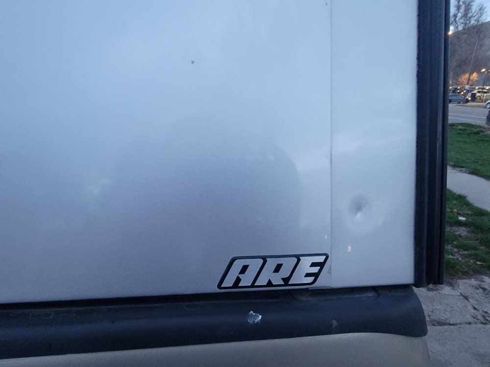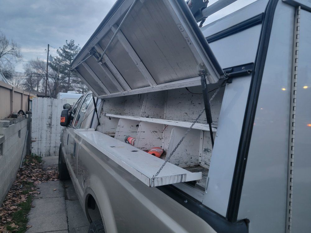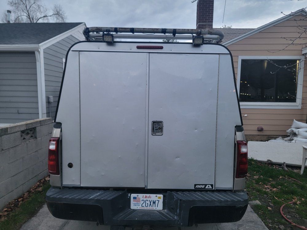 VenmoIn fair condition. There is no key easily obtainable, we tried installing this on a 2008 Chevrolet. The back doors of the shell were too wide. to install it on a Ford, you will have to remove the hardware that holds your tailgate in place. 80&1/2" long 63&1/2" wide 63" tall. Thanks for looking.