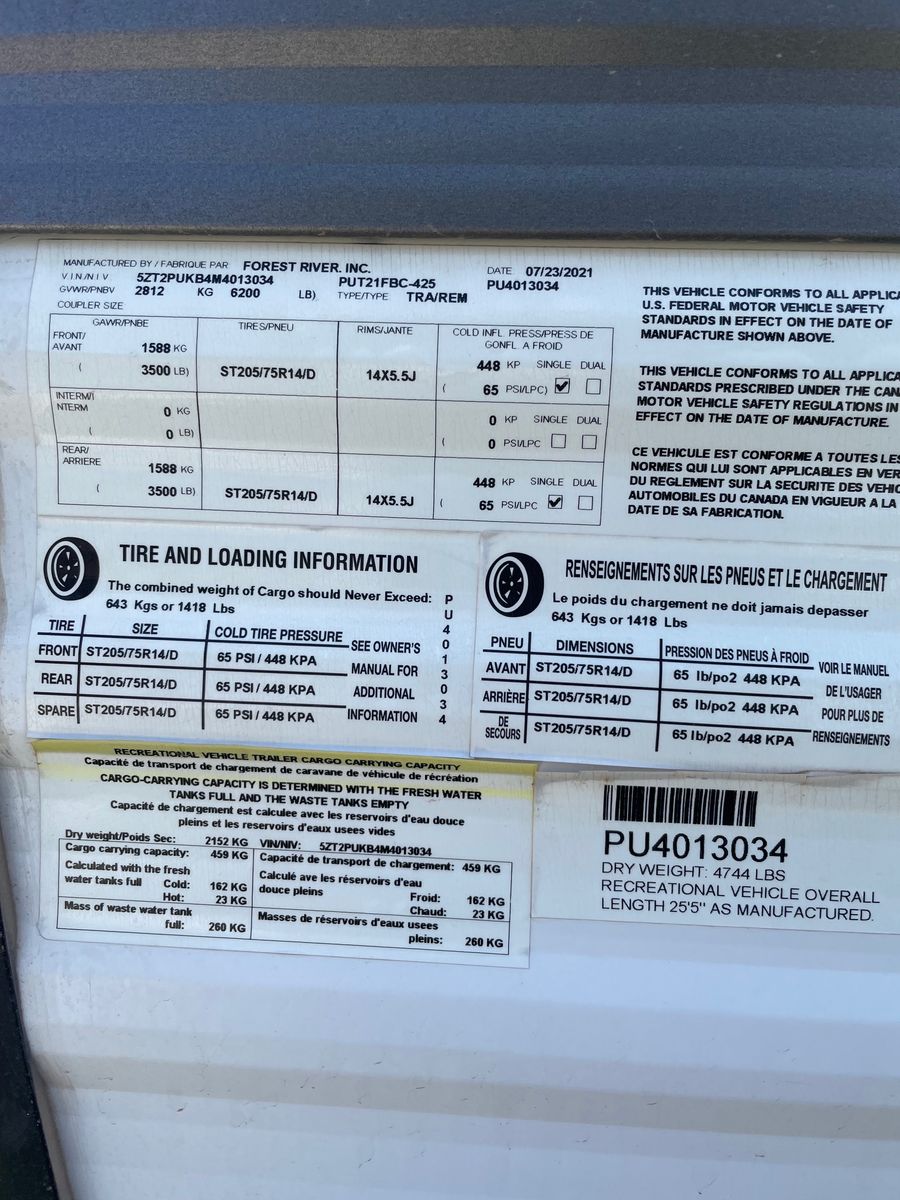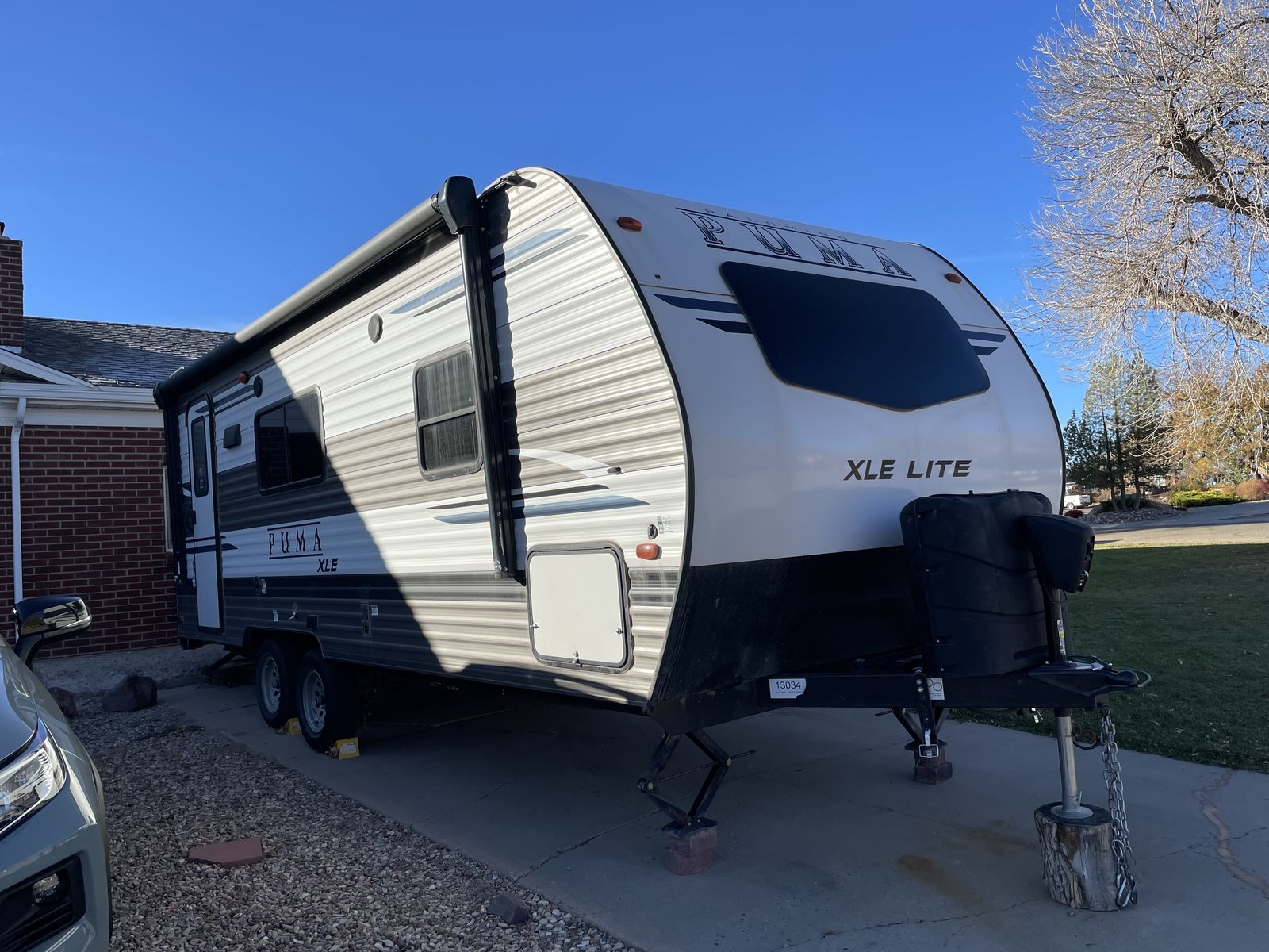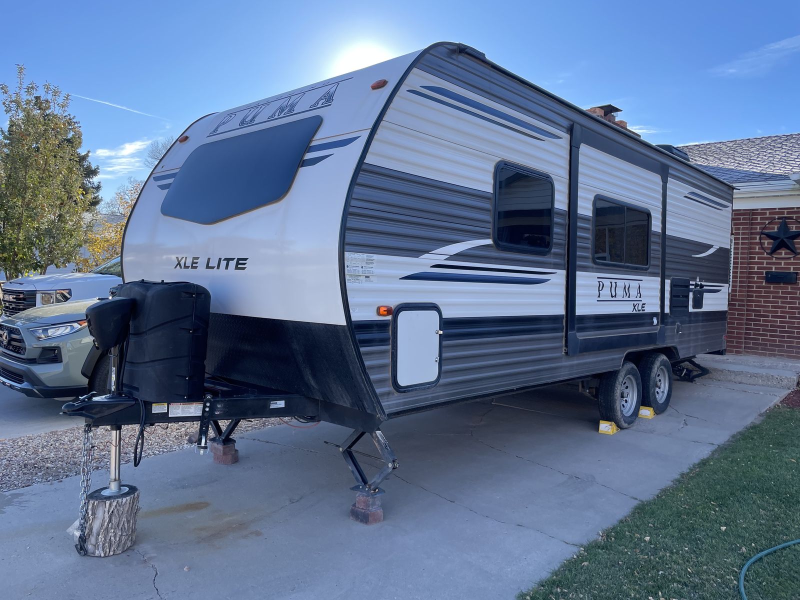 2021 Palomino Puma by Forest River 25.5' Travel Trailer. With air conditioning, heat, solar panel back up. Remote start generator and equalizer tow set up are also included.