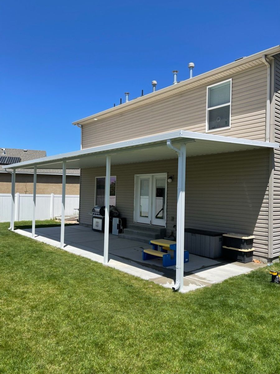 This New 10'x20' Carport or Patio Cover kit is high quality and complete. Installation is available with over a decade of professional experience. Keep the snow, rain, and sun from destroying your vehicle or Patio space. The framework is thick extruded aluminum that has a lifetime powder coat finish and is engineered to meet or exceed the local snow load and wind requirements. The materials are very nice looking compared to others that you've seen with thin roll form framework. The materials also carry a lifetime warranty from the manufacturer. If this size doesn't quite work for your needs, we can make it work. Call or Text 385-315-6950