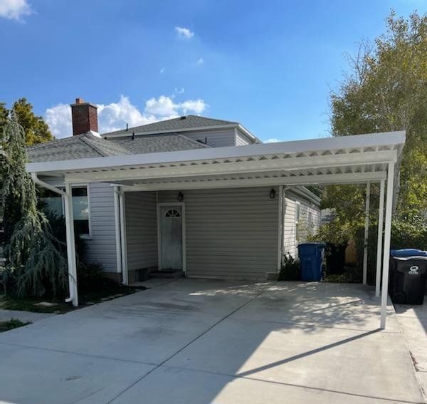This New 12' x 30' Carport or Patio Cover kit is high quality and complete. Installation is available with over a decade of professional experience. Keep the snow, rain and sun from destroying your vehicle or Patio space. The framework is thick extruded aluminum that has a lifetime powder coat finish and is engineered to meet or exceed the local snow load and wind requirements. The materials are very nice looking compared to others that you've seen with thin roll form framework. The materials also carry a lifetime warranty from the manufacturer. If this size doesn't quite work for your needs we can make it work. Call or Text 385-315-6950