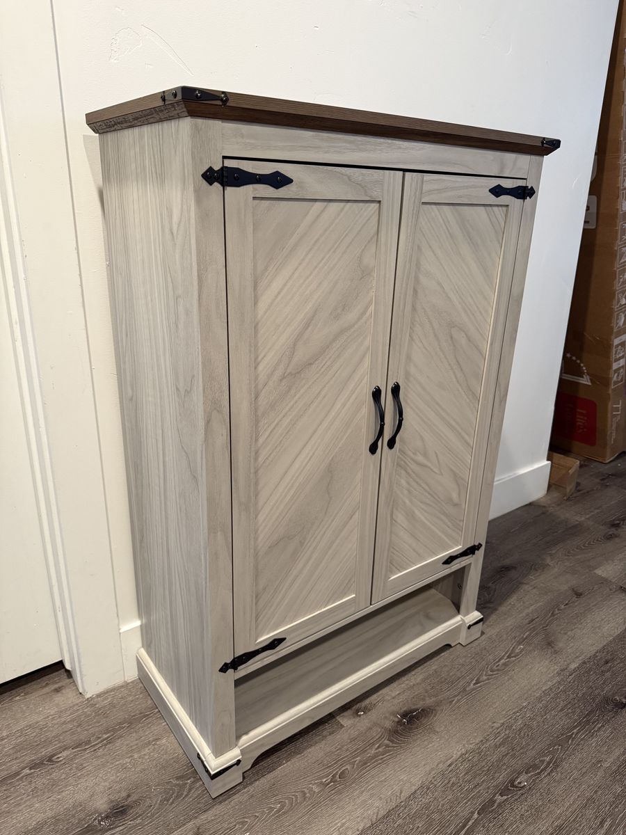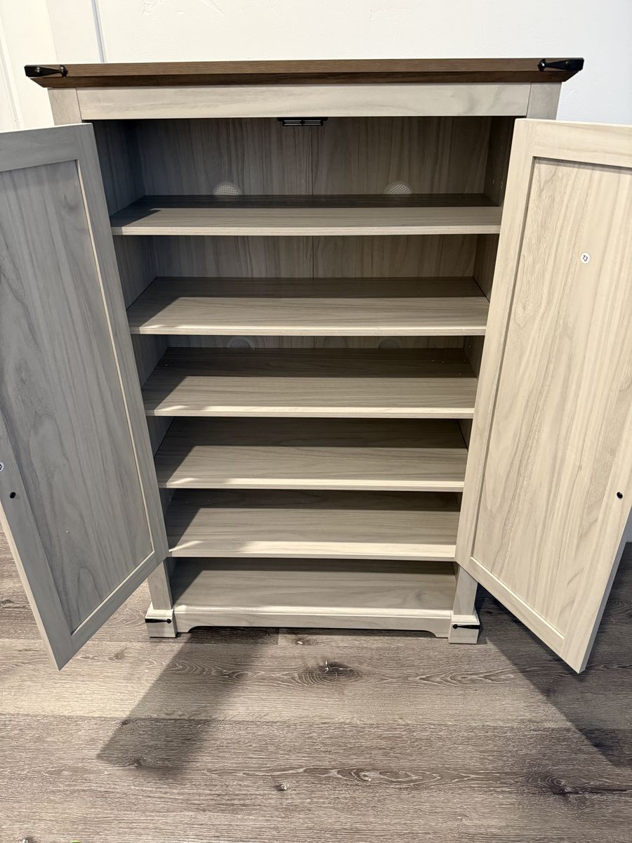 VenmoBrand New Farmhouse Shoe Storage Cabinet with 2 Storage Doors & Under Shoe Storage – Shoe Organizer for Entryway, 2 Adjustable Shelves, Farmhouse Shoe Rack, Grey