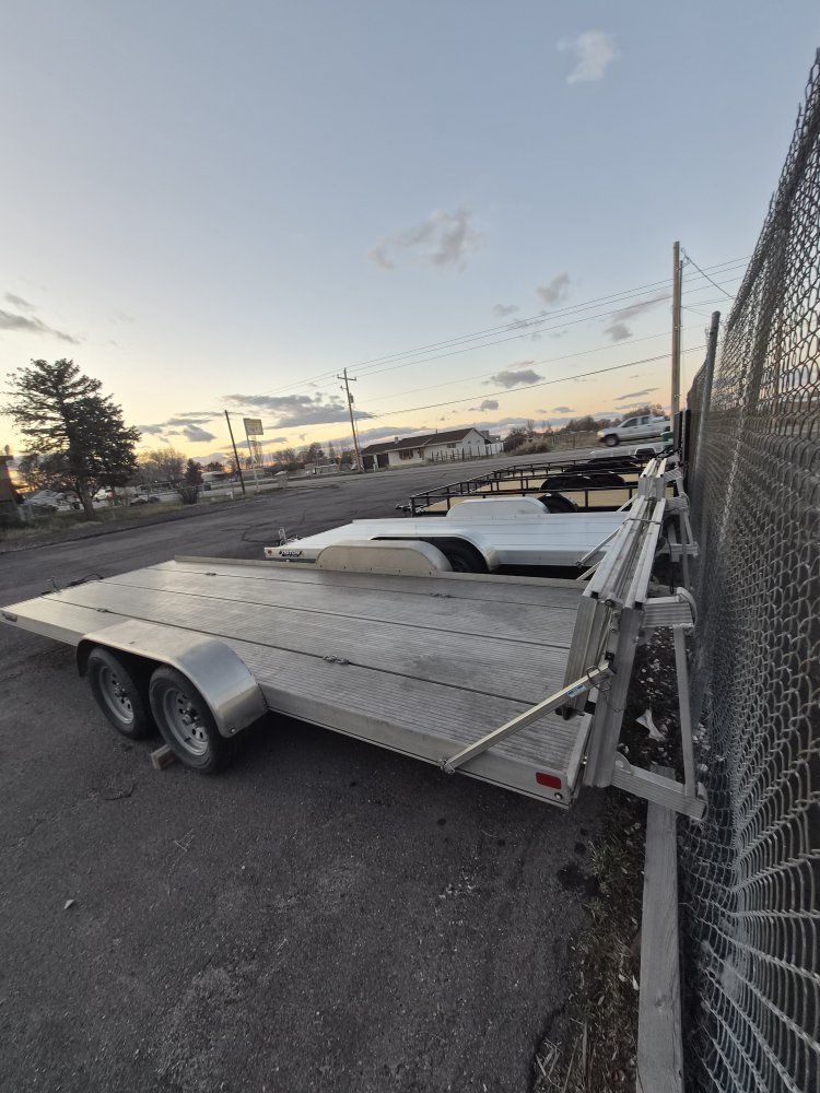 ZelleDelivery available to Ut ID NV WY MT FIT2081-2-A / FIT2081-2-FRAME Bed Width 80-3/4" Bed Length 244" Deck Type Aluminum Tie-Downs (8) D-Rings Overall Width 102" Overall Length 278" Ramp Standard Bifold HD Ramp Option N/A Tilt Bed No Carrying Capacity w/o Brakes -- GVWR w/o Brakes -- Carrying Capacity w/Brakes 6675 lb GVWR w/Brakes 7,700 lb Trailer Weight 1,125 lb Axle(s) - Qty/Rating 2-3500# Braked Hitch Height 16" Deck Height 19 1/4” Tires ST205/75R14C / ST205/75R14C / -- Tongue Jack Yes Coupler 2 5/16” Brake Standard Electric - Front Brake Options Electric - Front & Rear Mountain Tech Motorsports/Trailers 5551 West 5500 South, Hooper Ut 84315 Shawn Keller 801-309-8290 See Less