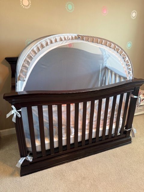 VenmoWe're selling this beautiful, solid wood crib for $90. Crib is available with or without the Pottery Barn hypoallergenic crib mattress for $200 (Crib + Mattress). The crib tent ties on and can be removed if you don't want included with your purchase.