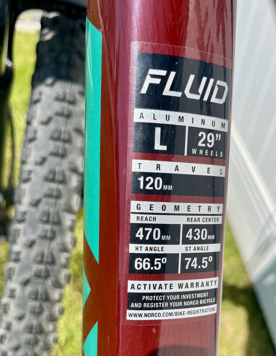 Venmo2023 Norco Fluid HT 2 hardtail mountain bike with a Large frame and 29” wheels. Great trail bike with modern geometry that climbs well and descends confidently. Lightweight aluminum frame and solid Shimano drivetrain make it a reliable bike for beginners or experienced riders.
