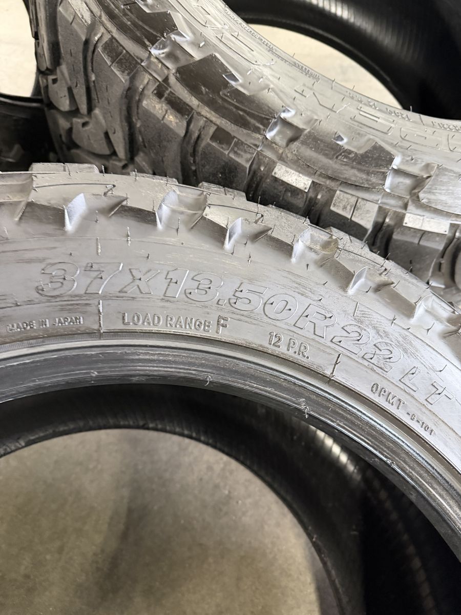 ZelleNice set or 37x13.50r22 Toyo m/t tires, super nice set of tires, no damage on them, F load 12 ply tires. Priced to sell, tires have some light cupping but are in great shape. Come check them out.
