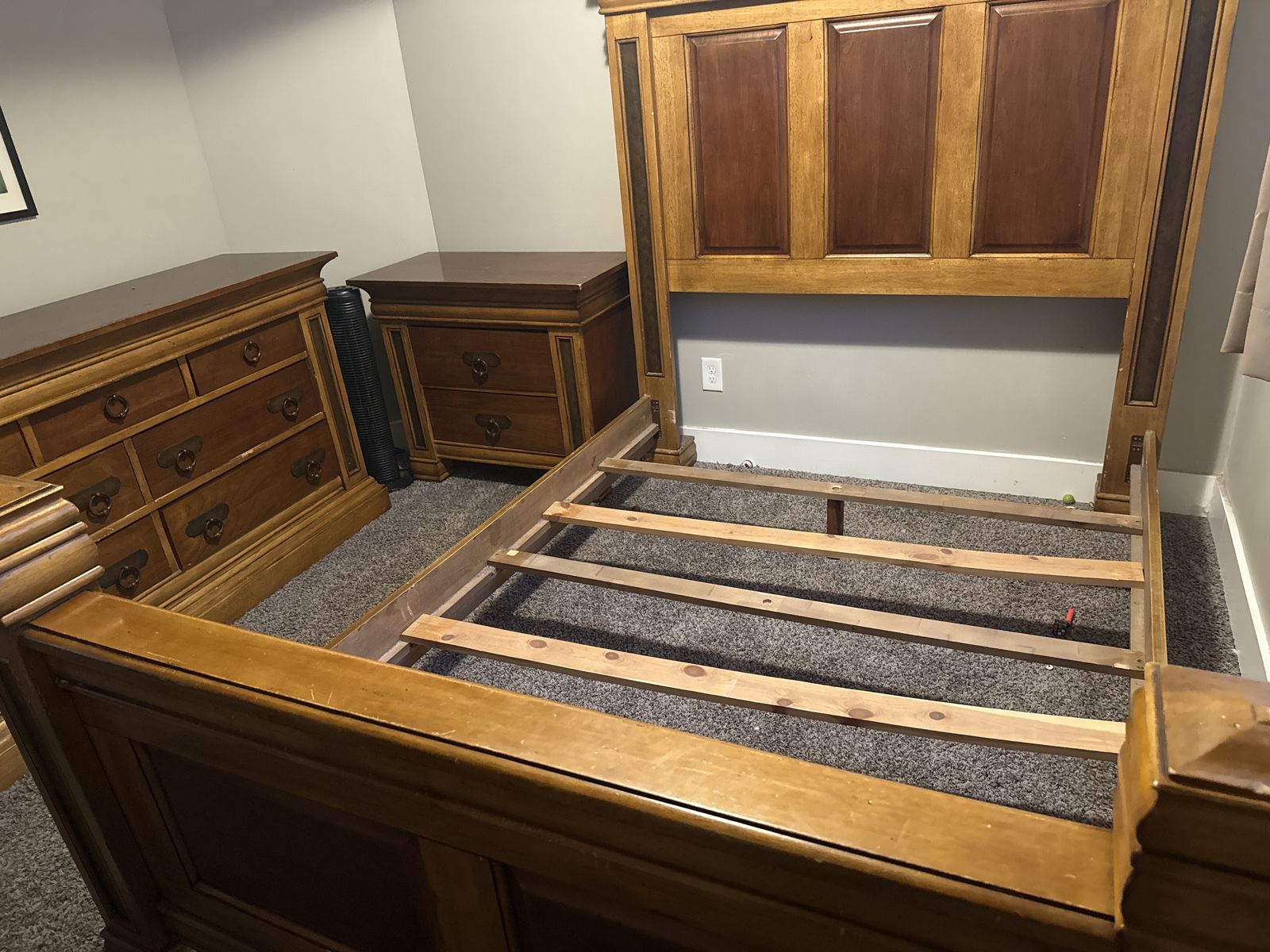 ApplePayThis bedroom is super high quality, solid wood. It’s Dick Idol by Klaussner design. Brand new it was very expensive. It needs a little bit of attention, but otherwise good.