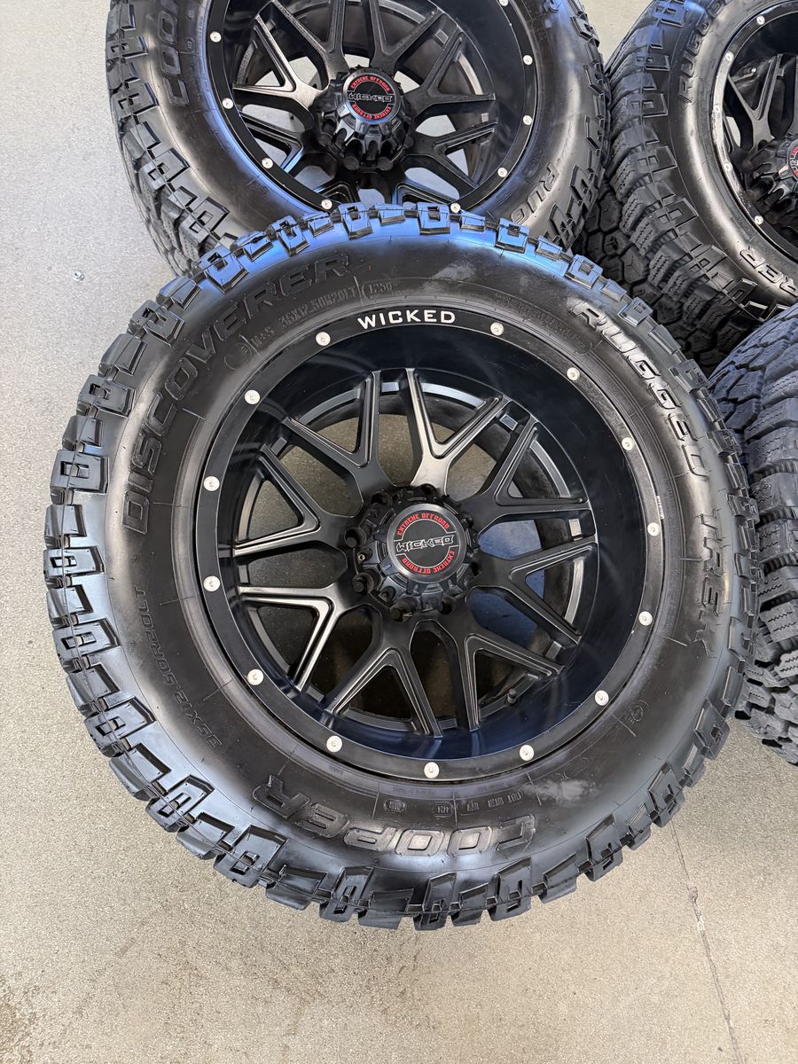 ApplePayWHOLE SETUP IS IN LIKE NEW SHAPE 20x12 wicked custom wheels 35x12.50r20 cooper discovery rugged trek tires