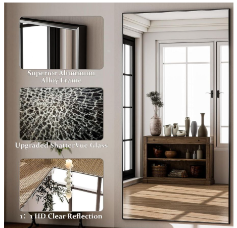 GLSLAND 71" x 31" Full Length Mirror Extra Large Hanging or Leaning Rectangle Mirror Aluminum Alloy Thin Frame Bedroom Floor Dressing,Black