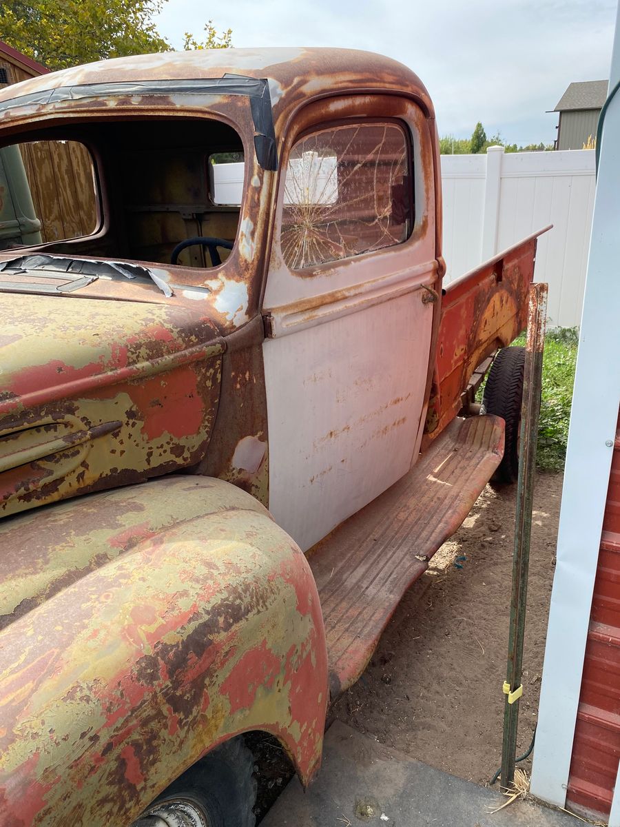 Need a spring/summer project? For sale is a 1942 Ford ½ ton pickup truck. This truck has the 6-cylinder engine and the 3-speed manual transmission. Both the engine and the transmission turn freely. The engine is complete. Previous owner had completed some body work. Does not have a fuel tank or a seat. Rear fenders are in amazing condition, which is very rare. Bill of sale only. Message to set up appointment to check out this truck with Dale. $2,000 OBO. Cash only. No scams. No codes, No holds.