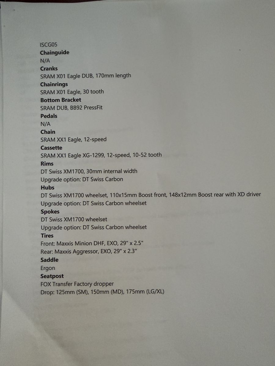 Yeti SB130 T3. Amazing bike. All high end components. See spec sheets. Had full knee surgery and had to go with the Yeti E160 electric.