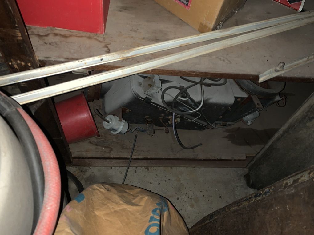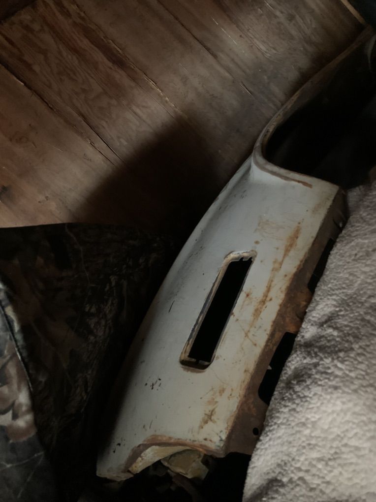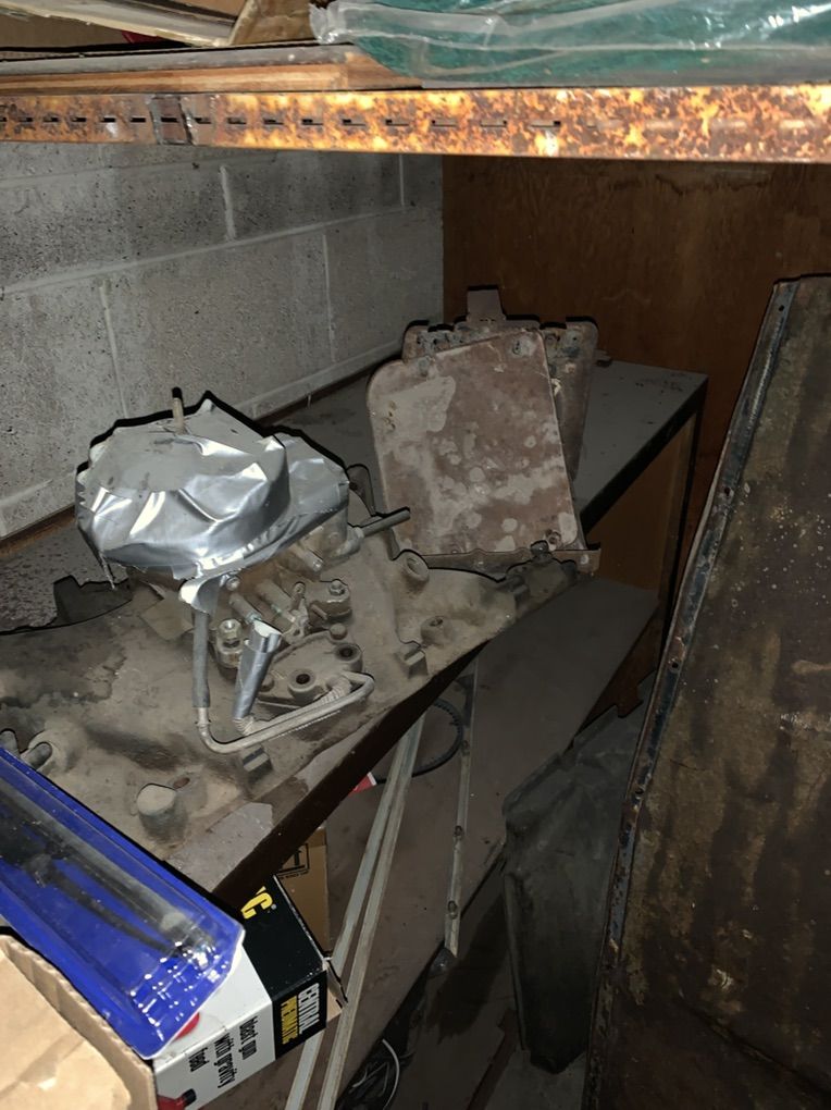 There’s a hood and front fenders original steel need work. There’s an air conditioning unit. There’s a intake manifold and a two barrel. There’s some light buckets municipal parts.