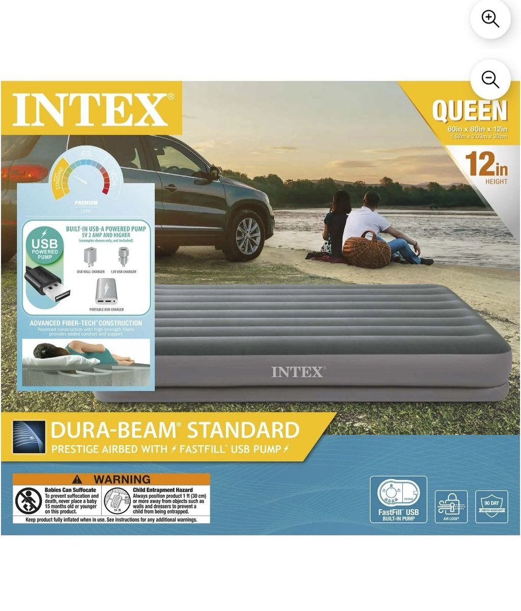 Intex Queen 12" Dura-Beam Prestige Air Mattress with USB Powered Pump