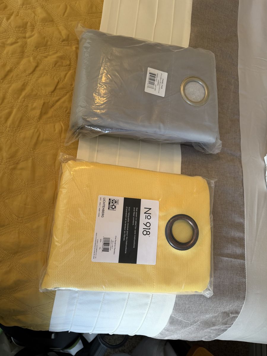 VenmoBrand new and never used. I missed the return window at JCPenney‘s. Queen bedspread. Pillows. Bed skirt. The colors are gray, white, and yellow And choice of two curtain panels, either gray or yellow. Bedding was originally $280. The curtains originally were $95.