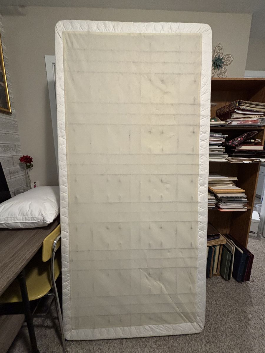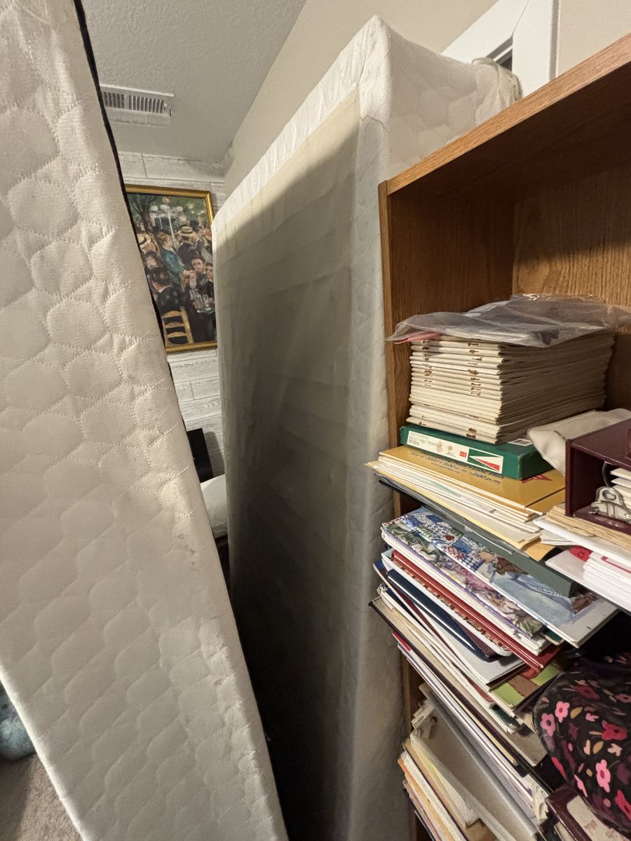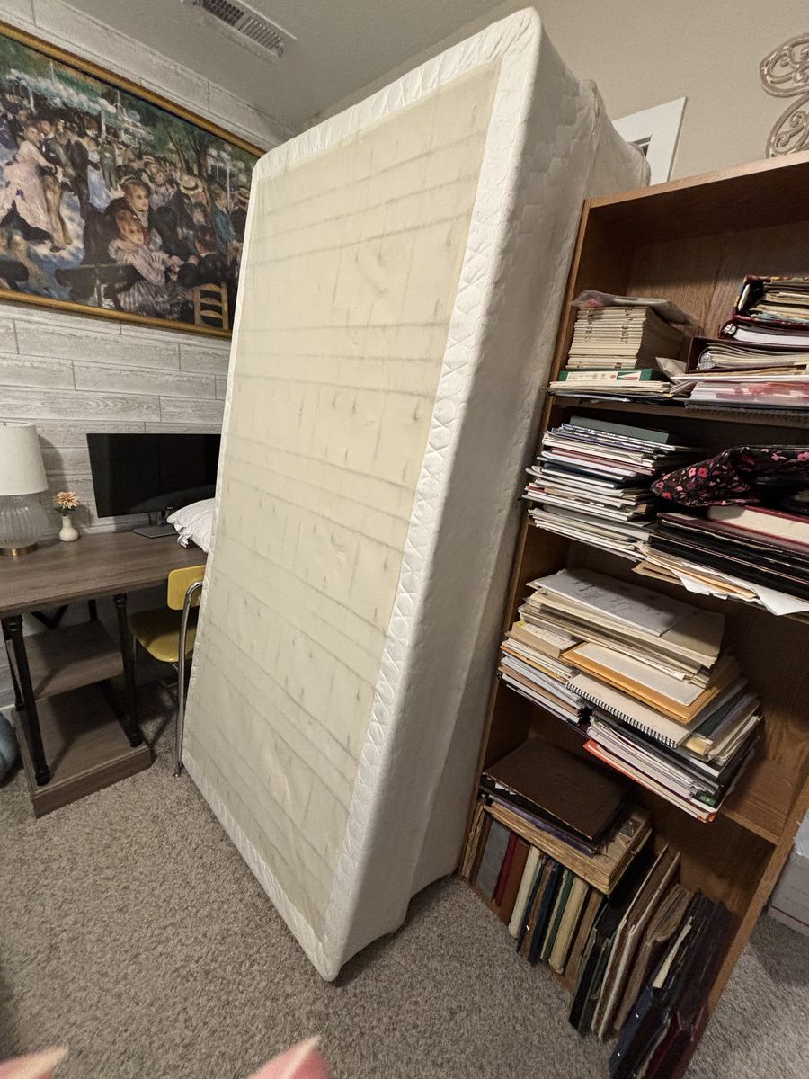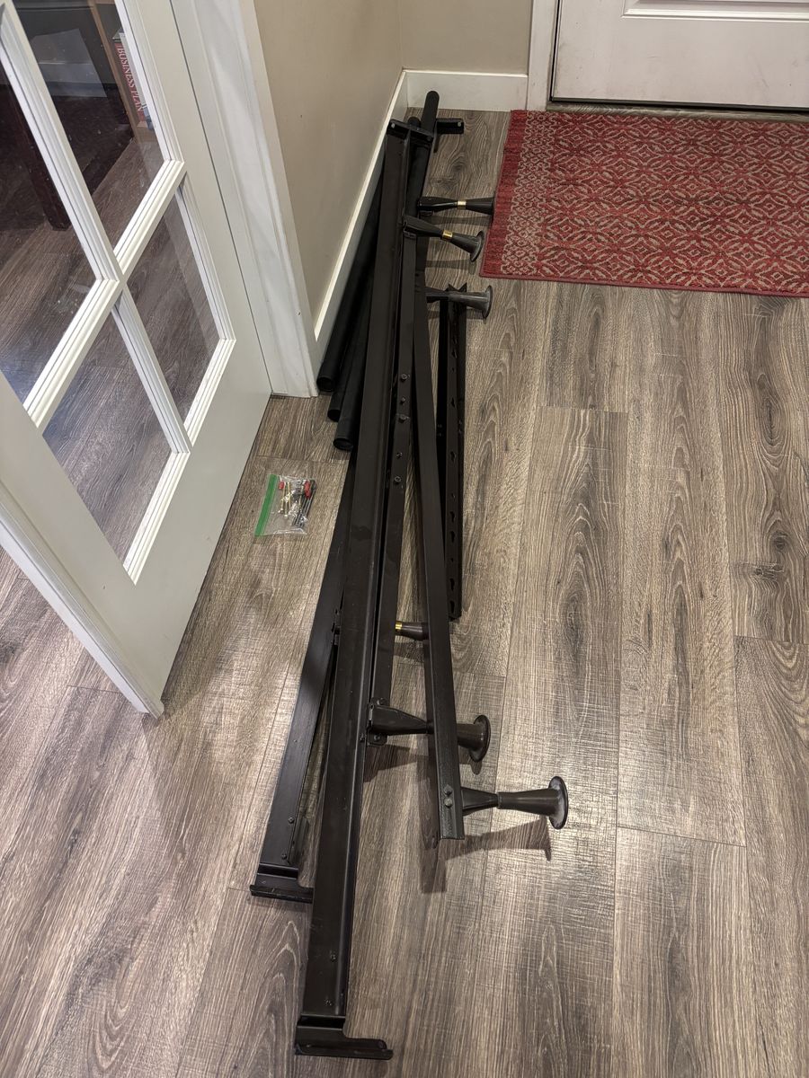 Nice black metal king frame, headboard, footboard, includes two nice box springs to fit the bed. We bought it new from RC Willey some years back. We live in Orem.