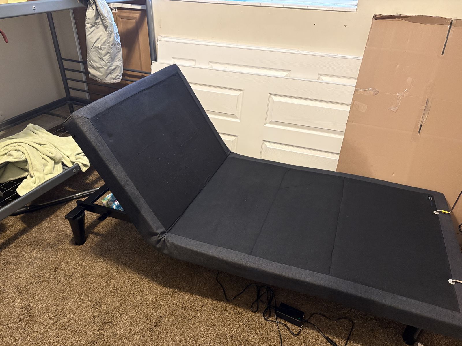 ApplePayThis adjustable bedframe is practically brand new. Both sides work fantastic. It also has a button on the remote to bring both sides down at the same time. The backboard has three vibration settings. (Low, medium, high.) No one died while using this bed frame. I have been able to use a regular bed. No need for this one. That’s why I’m listing it a thousand dollars cheaper than what I bought it for. Also, I have a mattress memory foam topper that come with it.