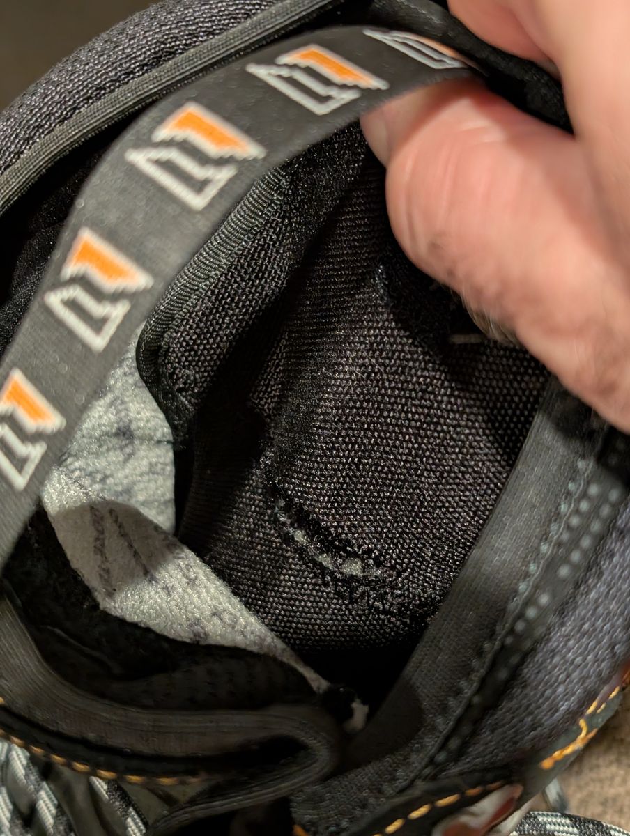 There is one little factory defect: The boots have a tongue pad that is permanently secured to the boot, but seperates from the tongue via velcro. On the right boot, in between the tongue and the pad, a seam on the pad has failed (See Pictures). The failed seam won't affect the integrity of the boot because the pad is not a structural component of the boots. And, because the failed seam is tucked away inbetween the tongue and pad, it won't rub on anything or affect how wearing the boot feels. I believe that someone handy with a needle and thread and maybe some glue could make a adequate repair.
