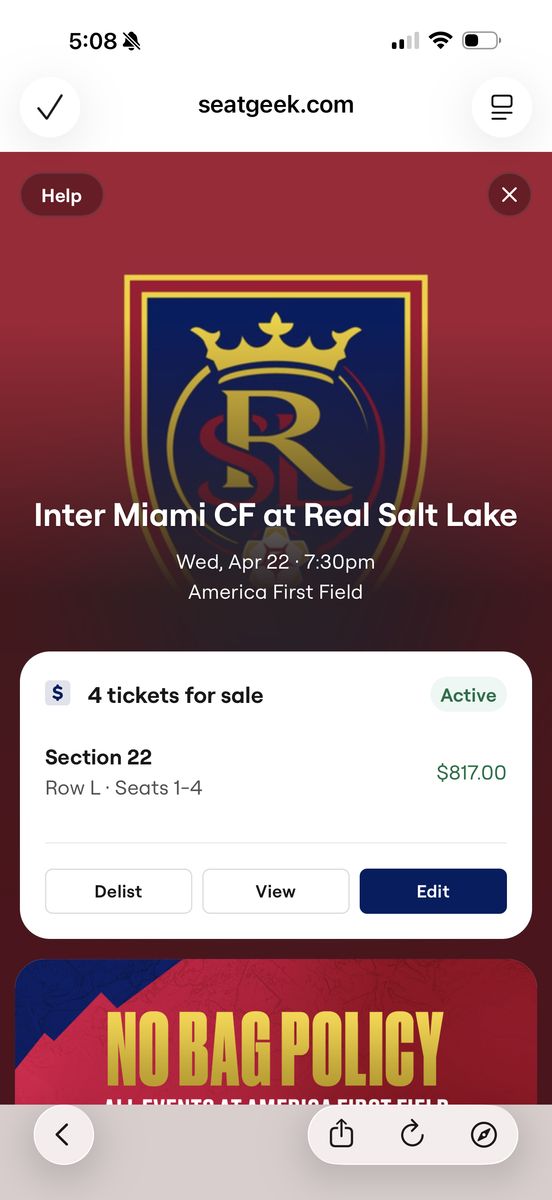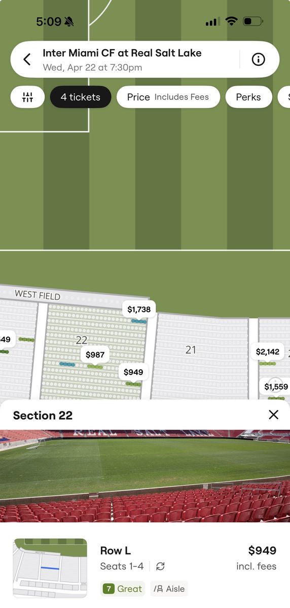 Price per ticket on KSL is $700, looking to sell all 4 seats together.