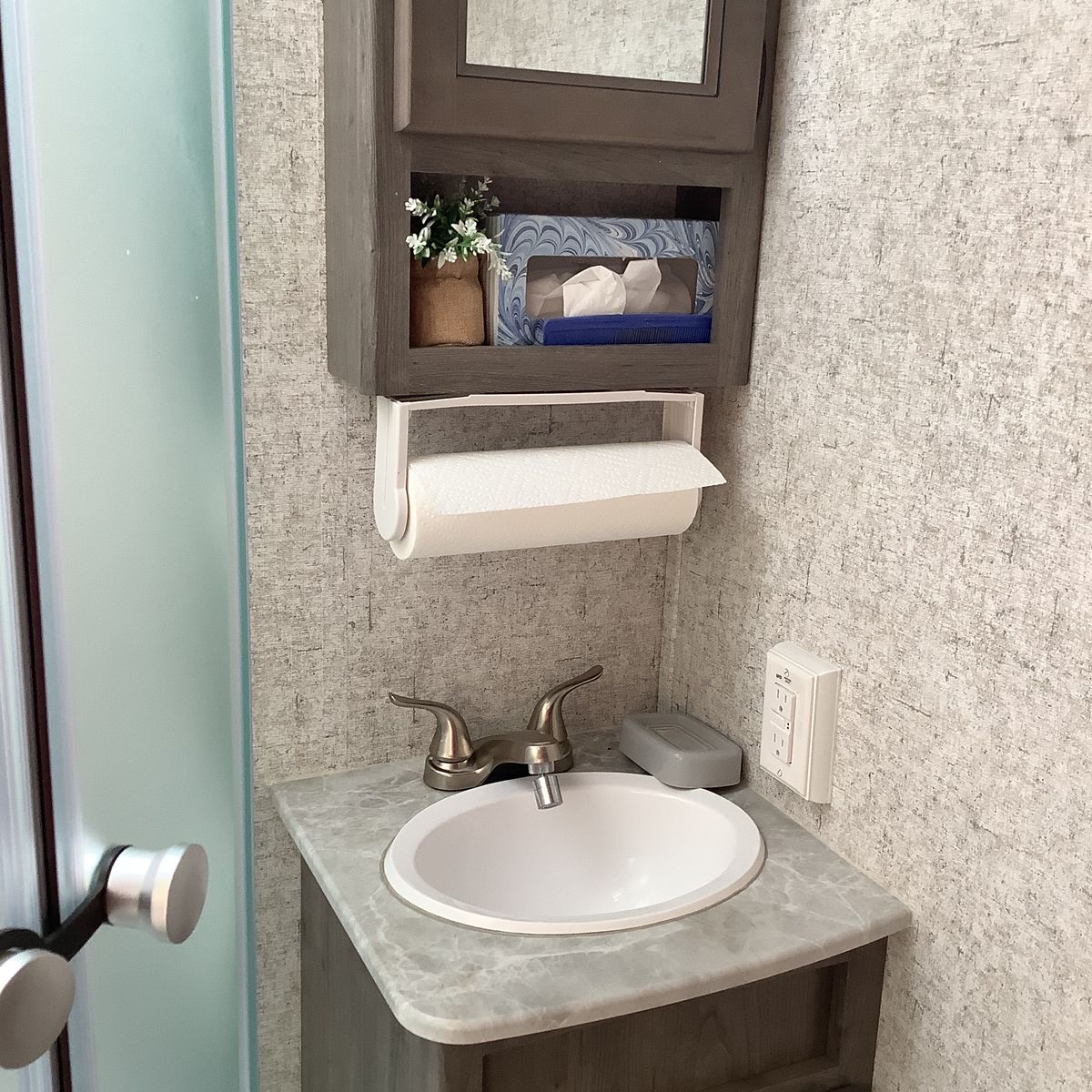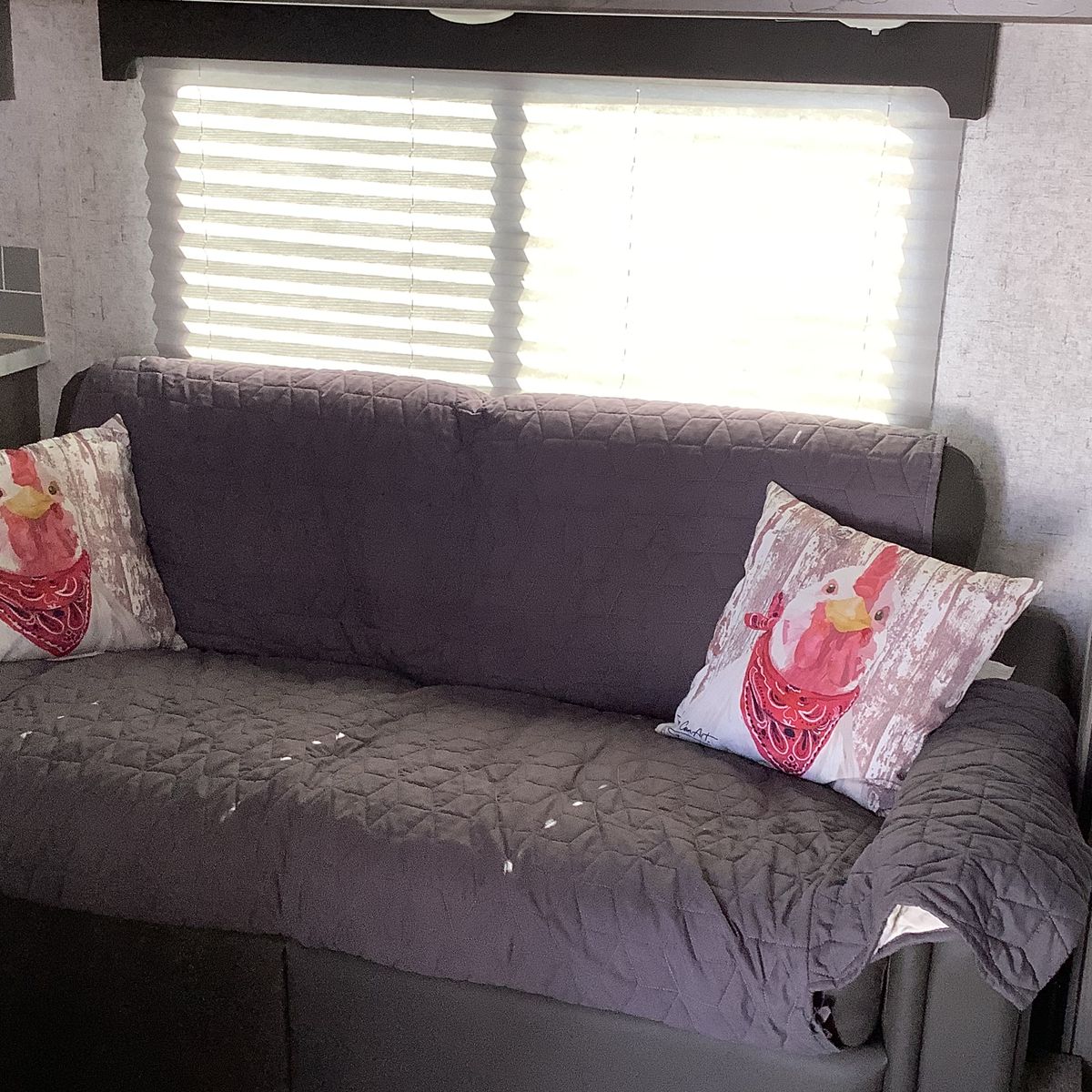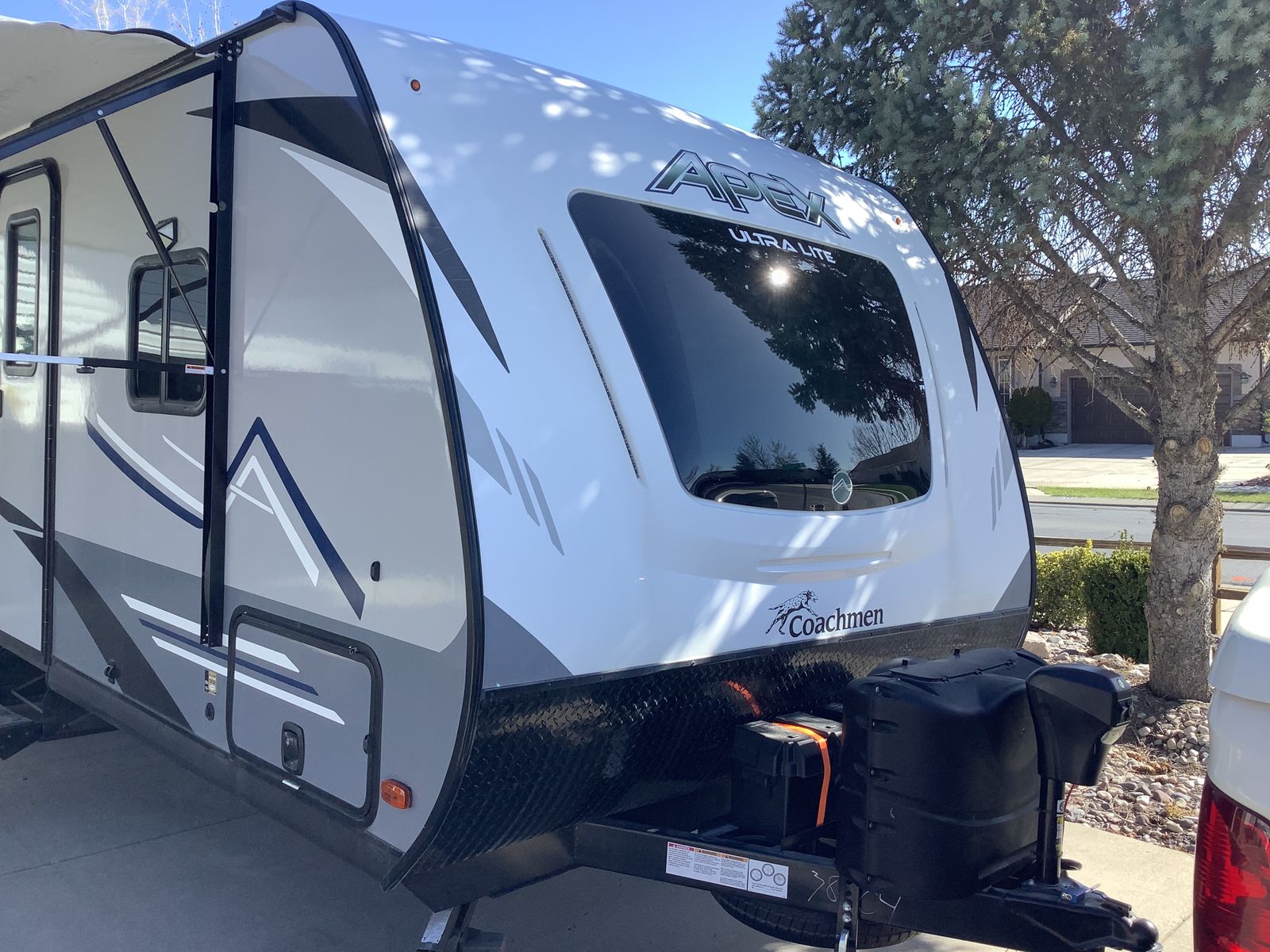 Like new with ample storage inside and outside. Very roomy rear bathroom with extra large cabinets for storage. Queen bed, fold down sofa, and dining table for sleeping. Convenient outside kitchen with fridge, grill, sink, cabinets and gas grill. This trailer is in excellent condition.