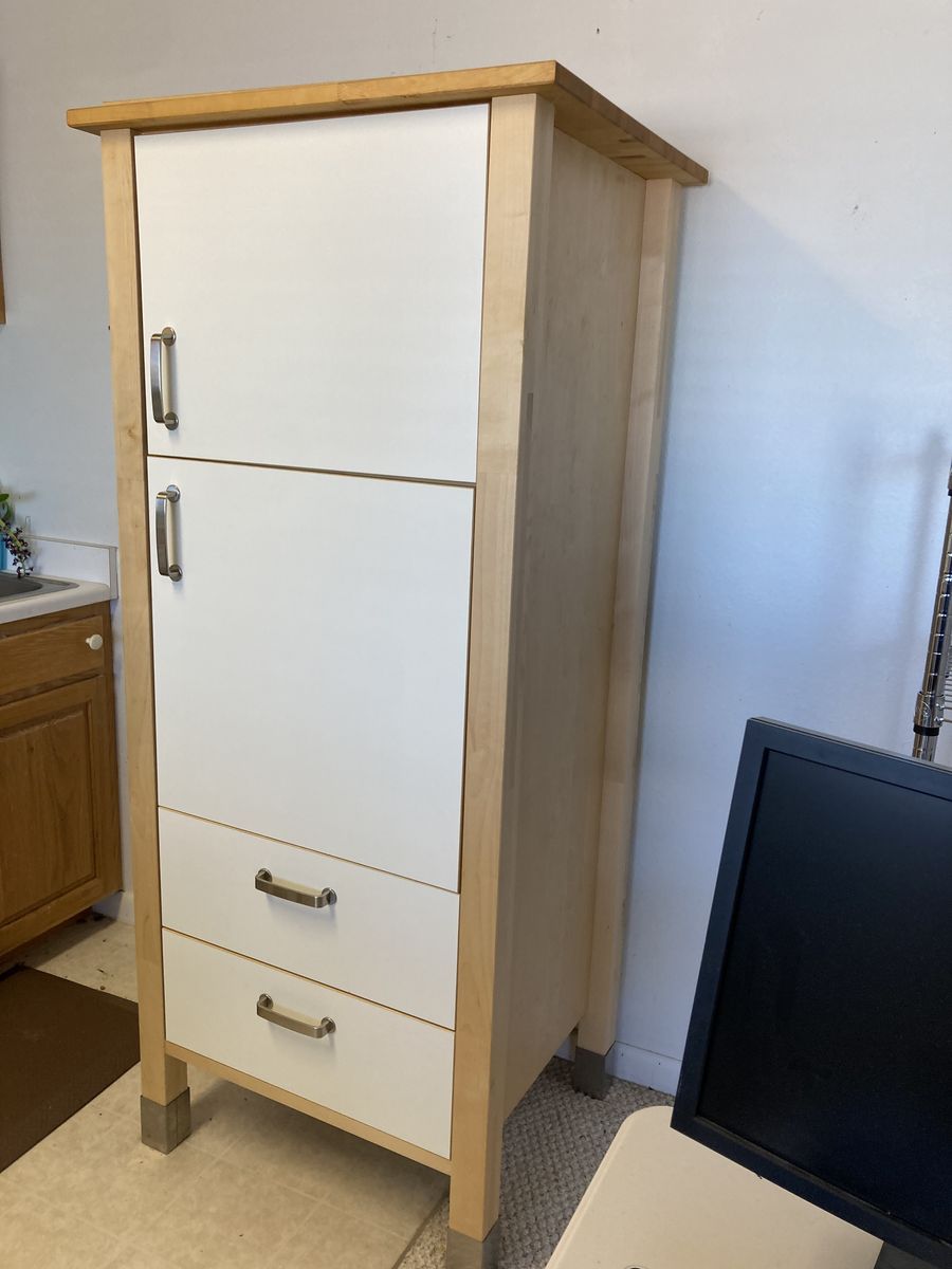Kitchen pantry cabinet with doors and drawers. 71 inches high by 2 feet wide. Excellent shape