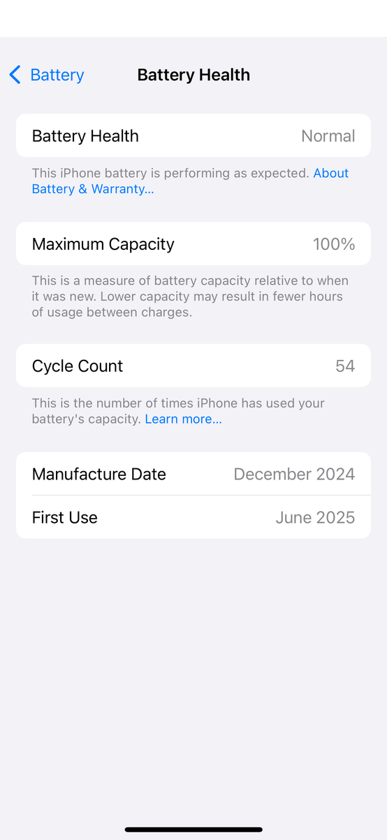 Battery Health is at 100%