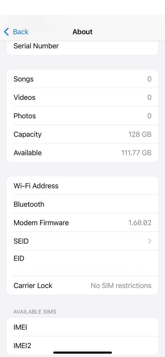 iPhone info: