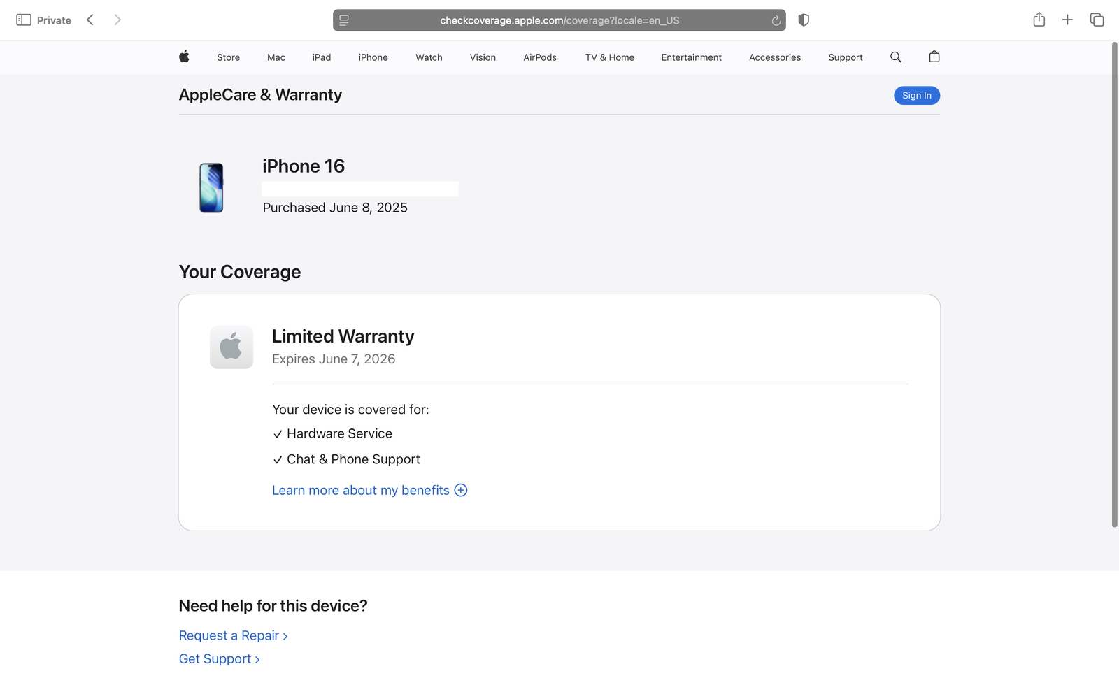 Apple Warranty until June 7th, 2026