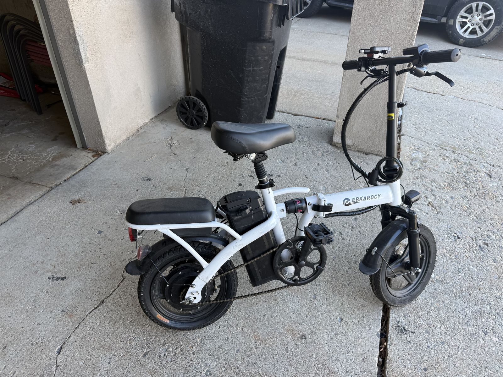 VenmoGreat electric bike can reach up to 20-30 mph depending on size of person has 3 different modes just replaced brakes will include a set of new ones as well battery in great condition charger included has the signals head light brake light and a horn even a alarm system with the key needs new back tire other then that runs great no problems 700 brand new asking 325 obo handlebars are adjustable to height and the bike can fold as well willing to negotiate
