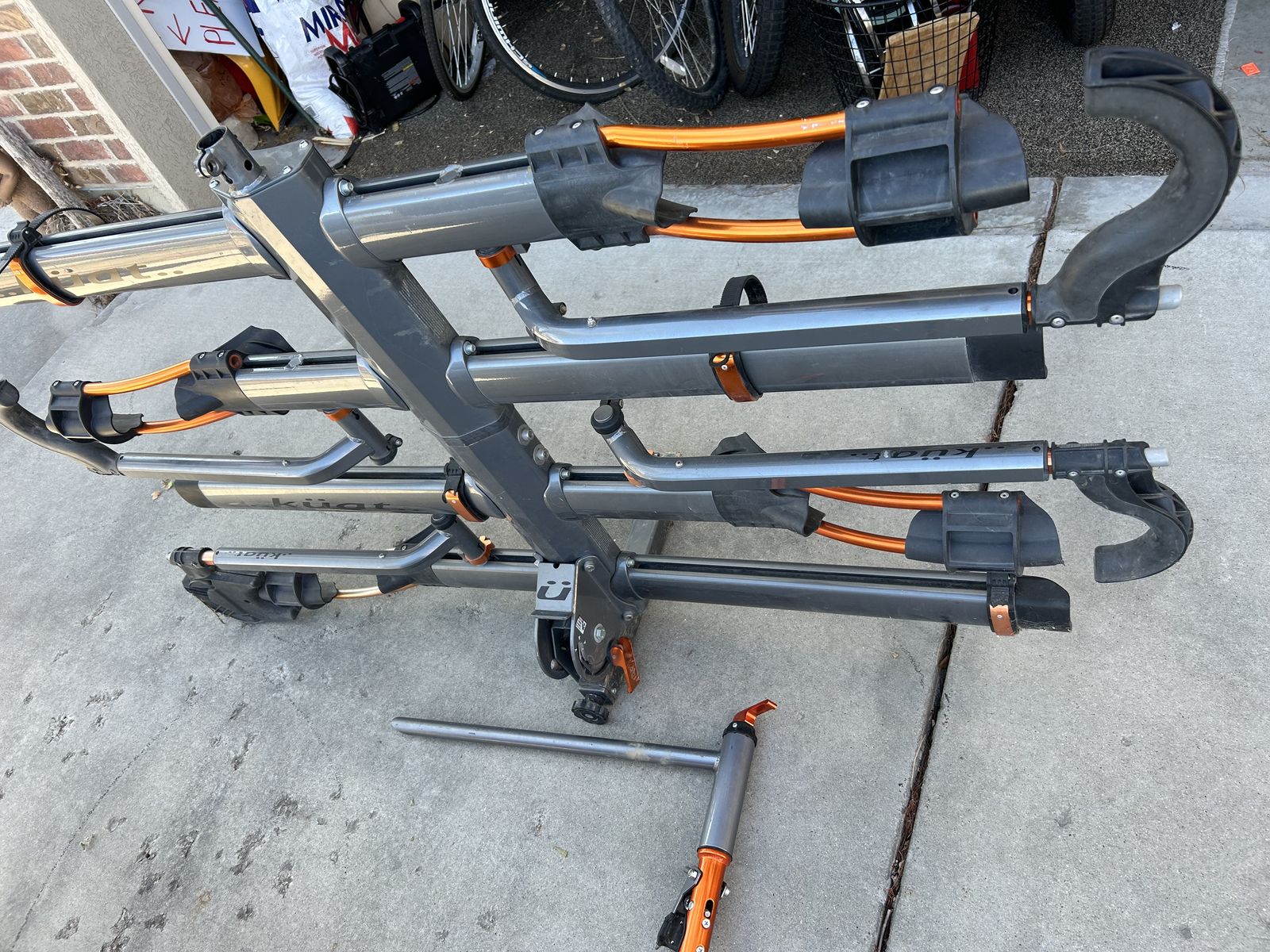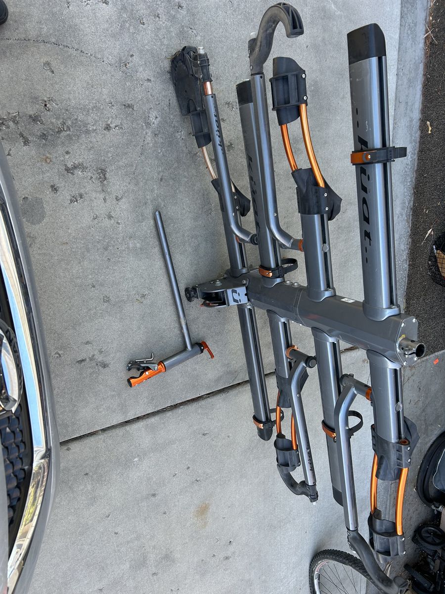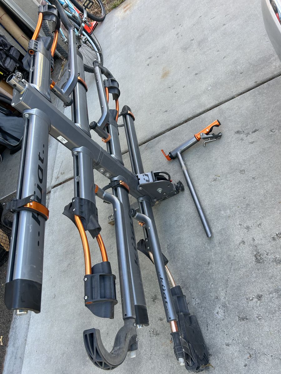 Like new Kuat NV 2.0 +2 bike rack with the stand to work on your bikes. 2" hitch. Comes apart to carry 2 bikes instead of 4. Locks to the vehicle with a locking hitch pin. Each bike slot has its own cable bike lock to lock the bike frame to the rack. paid over $1,600 new.