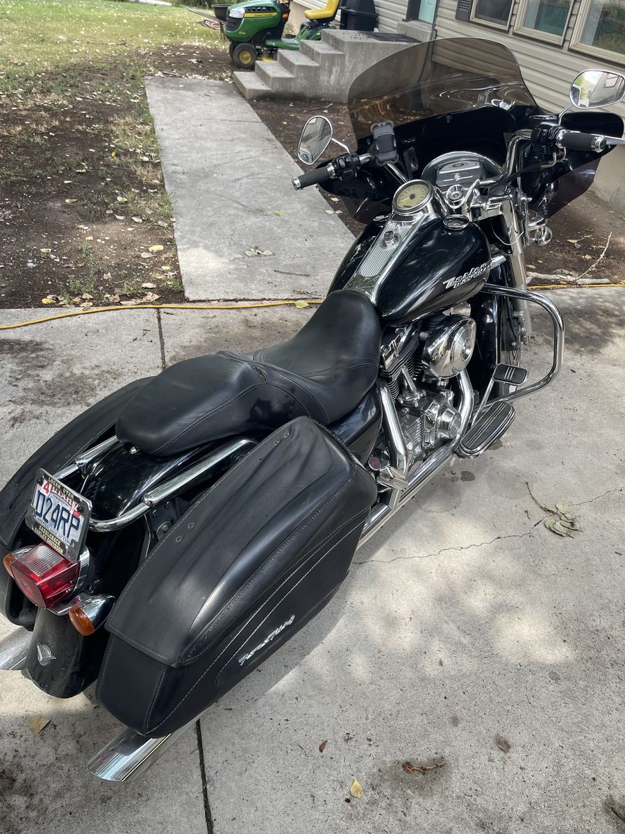 2005 Road King Custom. Maintenance up to date. Stored in garage and covered. Minor weather damage to soft bags. 6,500$ OBO. Not looking for trades!