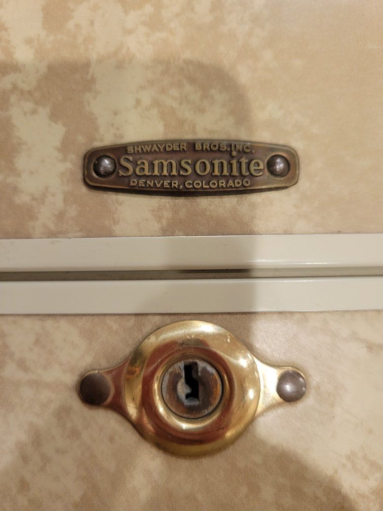Vintage cream marble samsonite suitcase