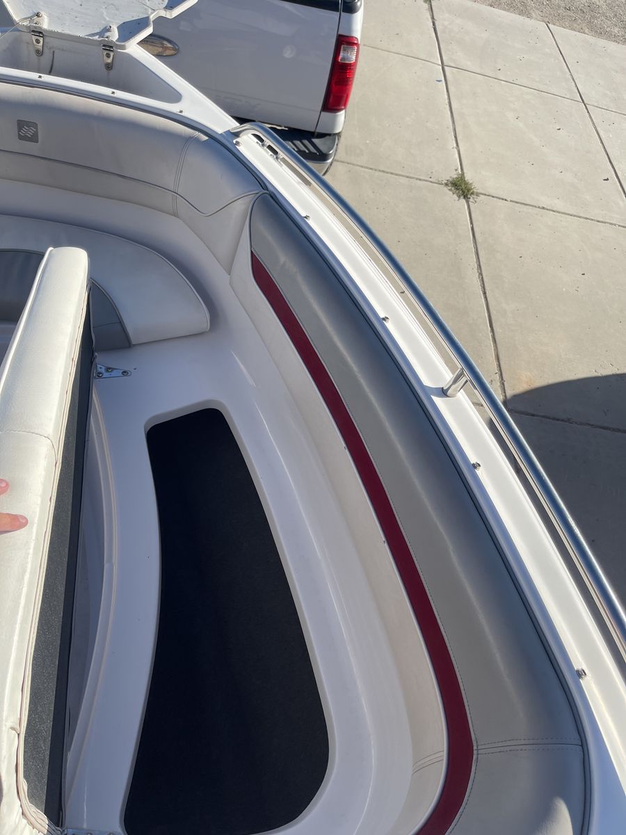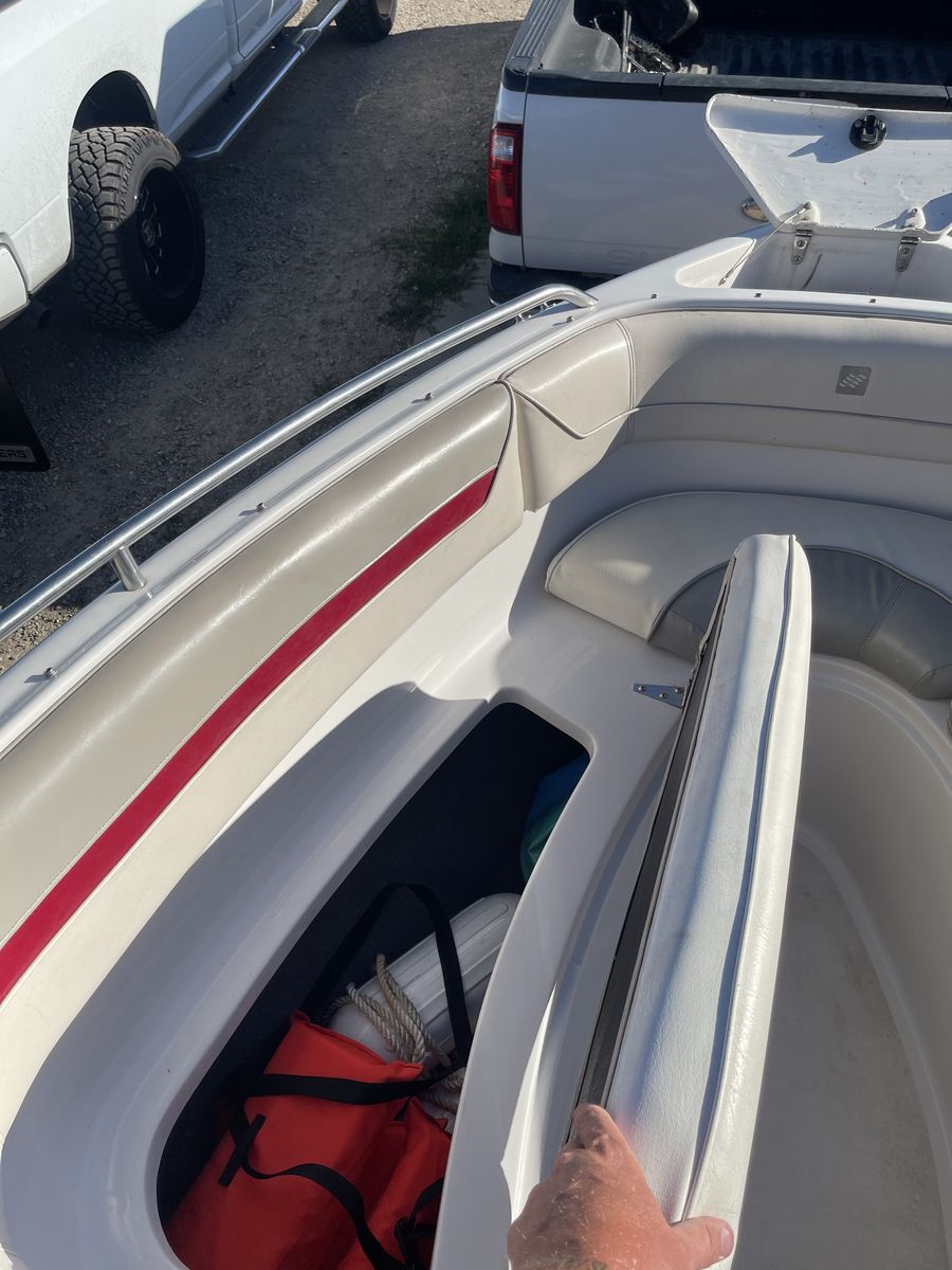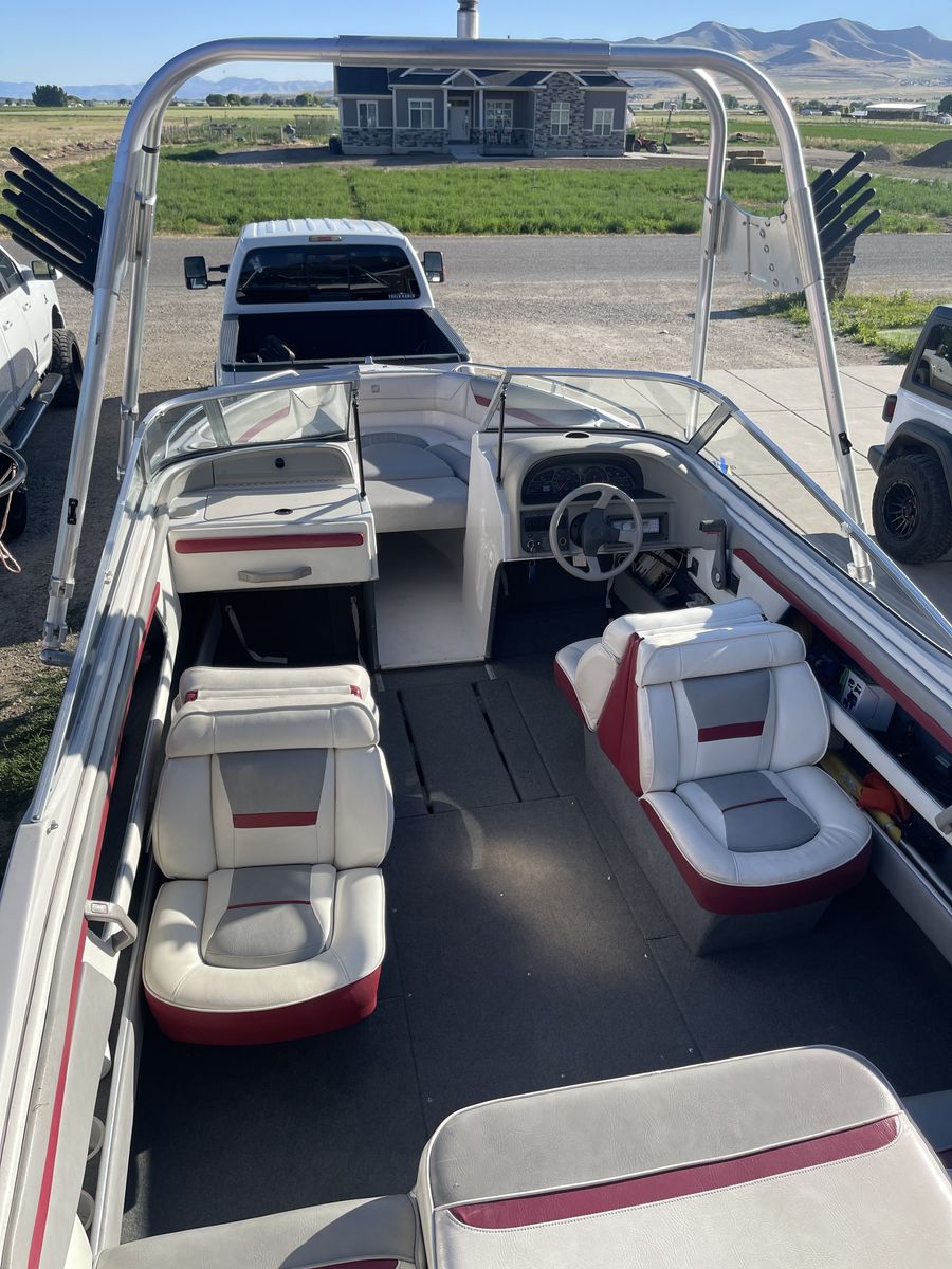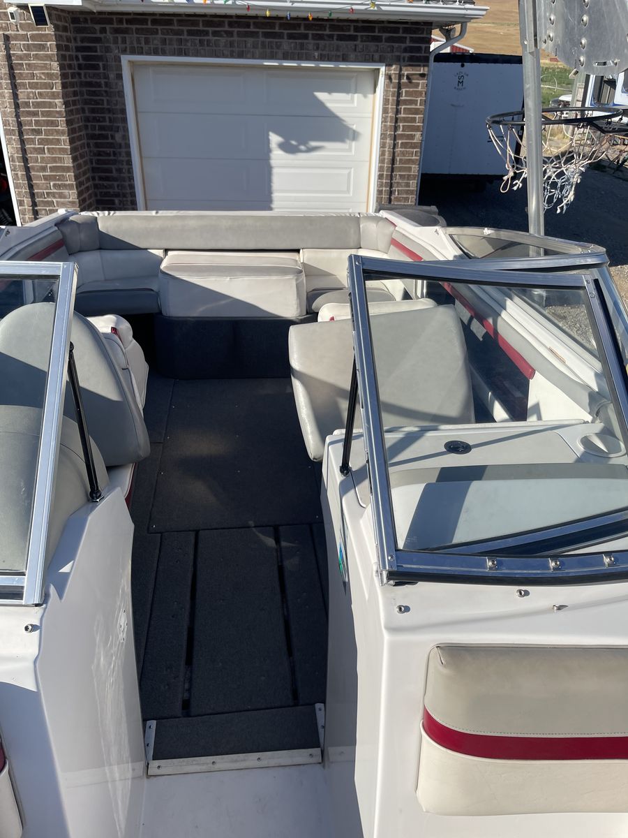 -New steering support and steering bushings -Battery switch -New electrical for battery switch -Full brand new resupported ski storage locker -New ground for fuel gauge and bilge pump -New screws and anchors for side paneling across full interior. -New impeller -New 5.8 351 Windsor OMC Engine -New timing cover gasket -New oil pan gasket -Valve cover set -New gimble bearing -New bellows -Complete winterization and summerization done by Dons Marine in Smithfield, UT (proof available)