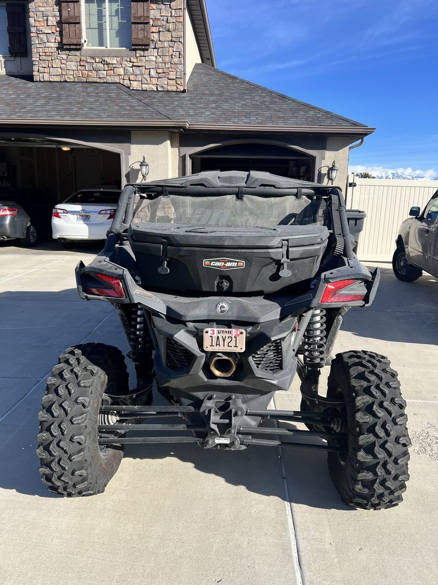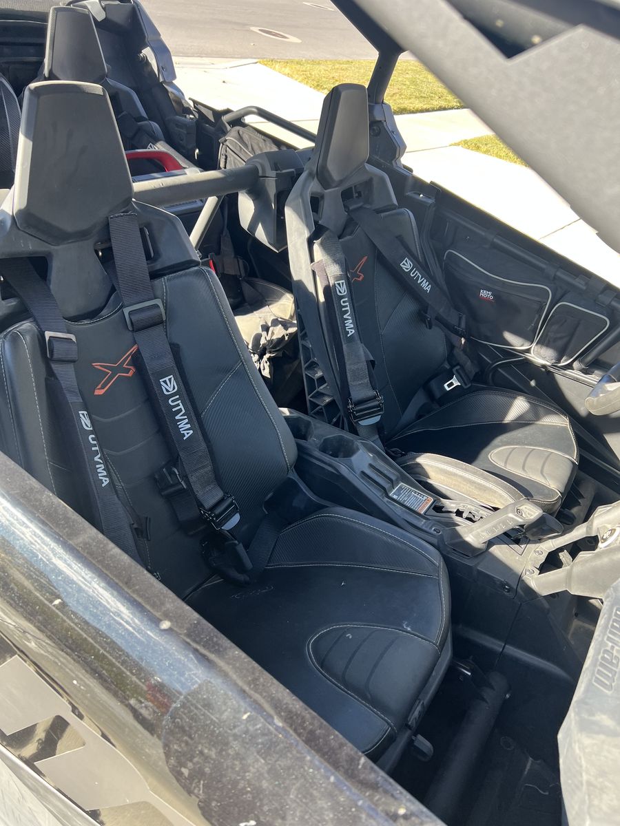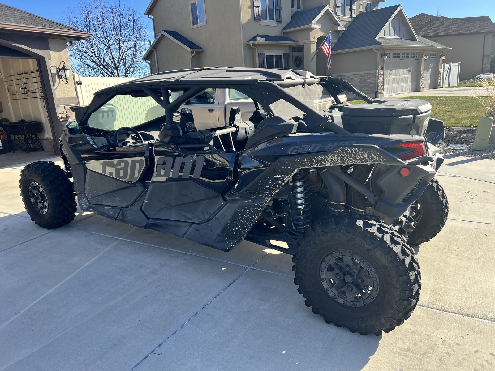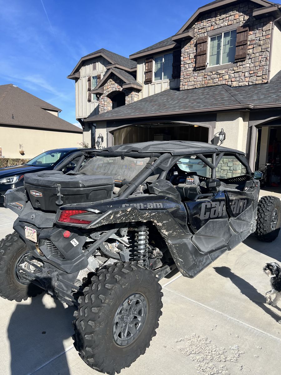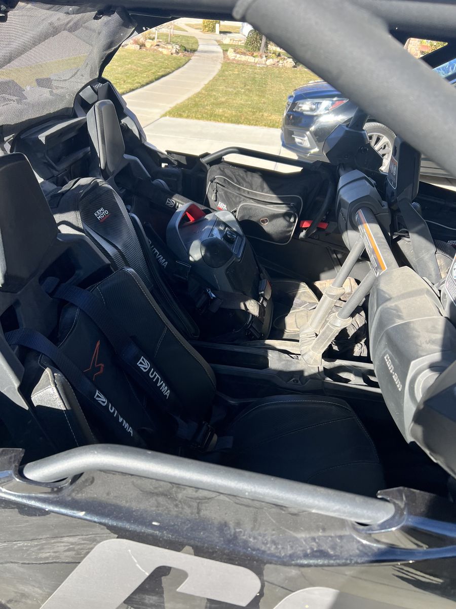 Lower doors Rooftop Four point harness CANAM cooler Bent Metal glass windshield LED lights on the side mirrors that light up the road at night Extra belt Belt changing tools Door storage Rear window net