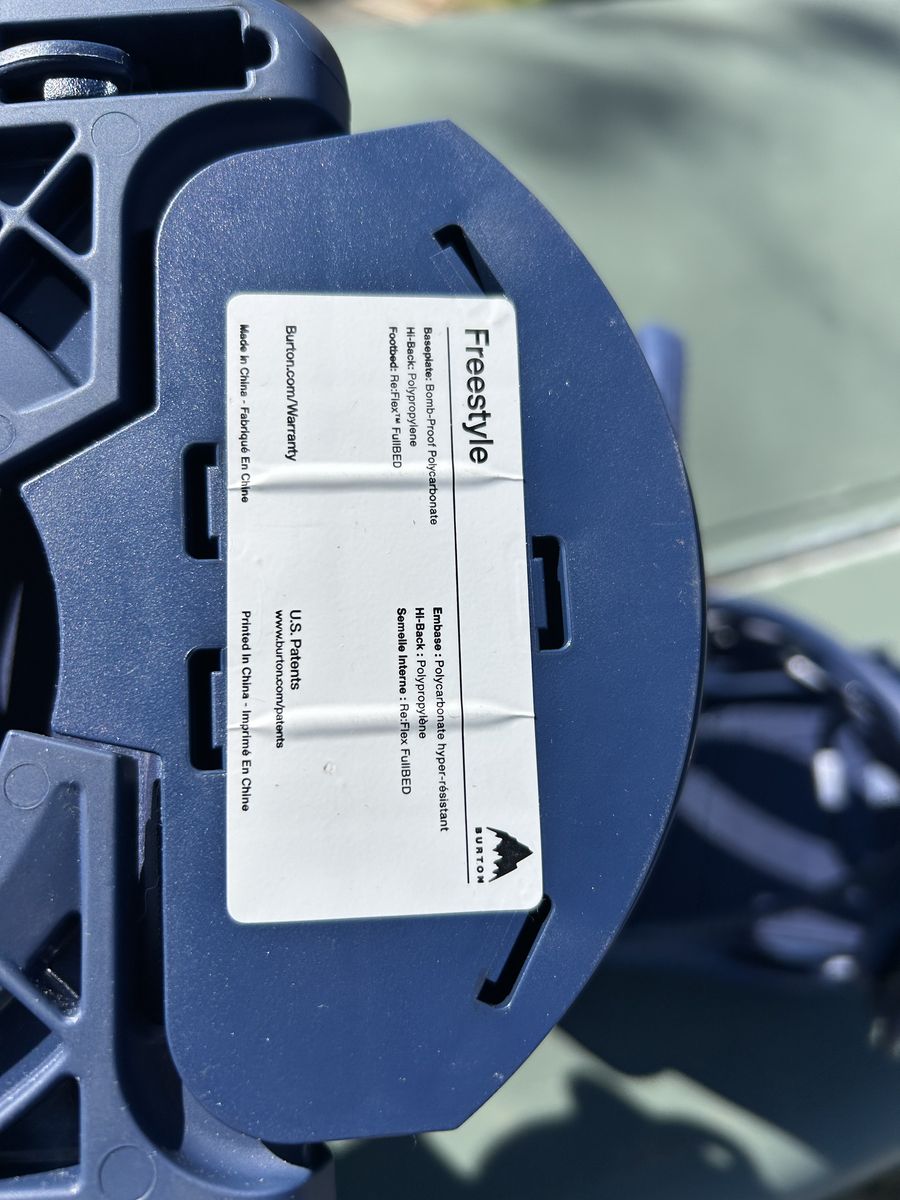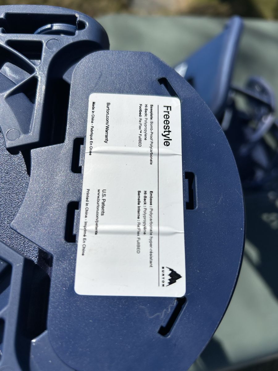 Brand new Burton freestyle bindings never used. No discs/hardware but those are available for purchase separately on the internet