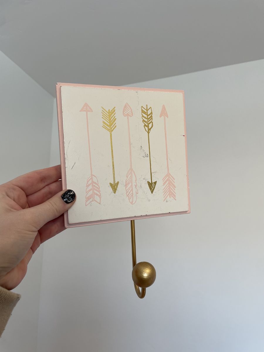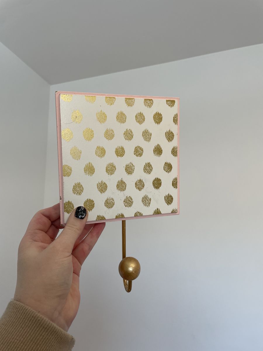 VenmoPink, gold, and black little girls wall decor and coat hooks.