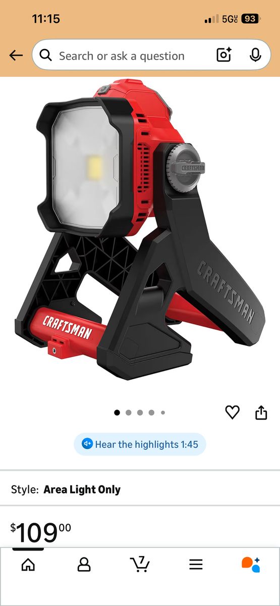 VenmoWorking craftsman 20v work light with one battery. No charger. Broken support( easily glued back together).