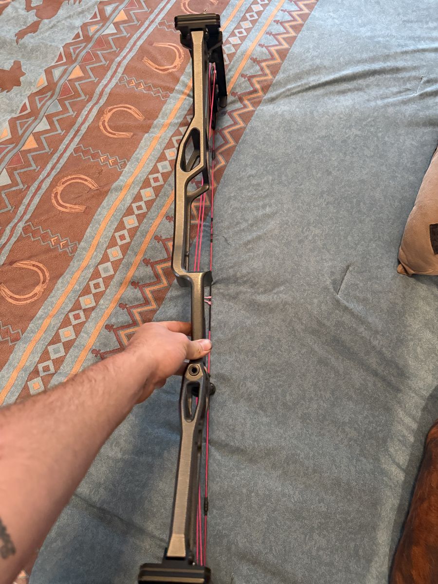 ApplePay37 Alex to Alex goes up to 31 inch draw and 60 limbs on it has bad new mad goat strings and a other set for back up that are band new and the same color