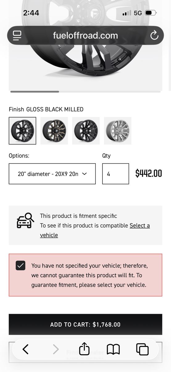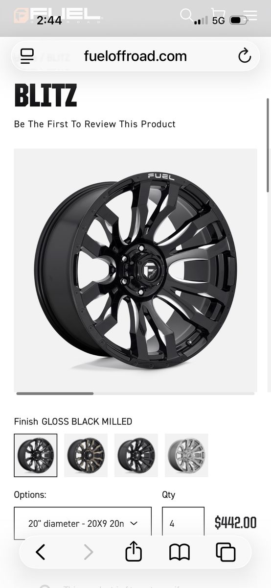 Fuel Off Road Blitz Gloss Black Milled 20”x9” Rims 6 Lug