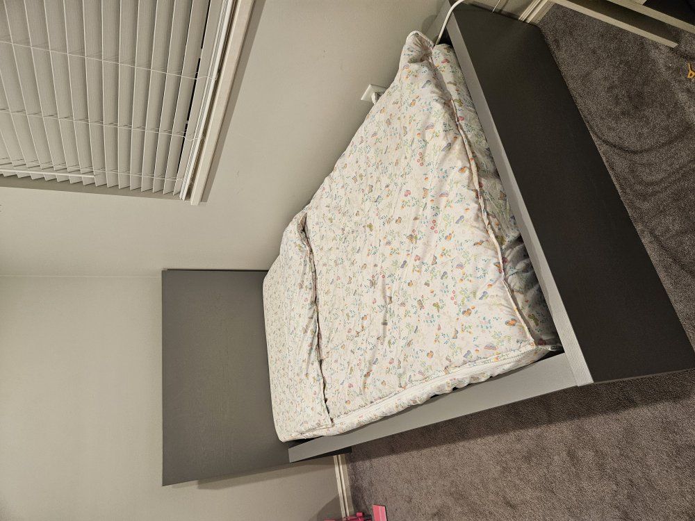 Grey Twin bed frame (mattress not included) we love this bed frame but have moved on. Would like it gone asap asking $50.00 or best offer. Text is best thanks