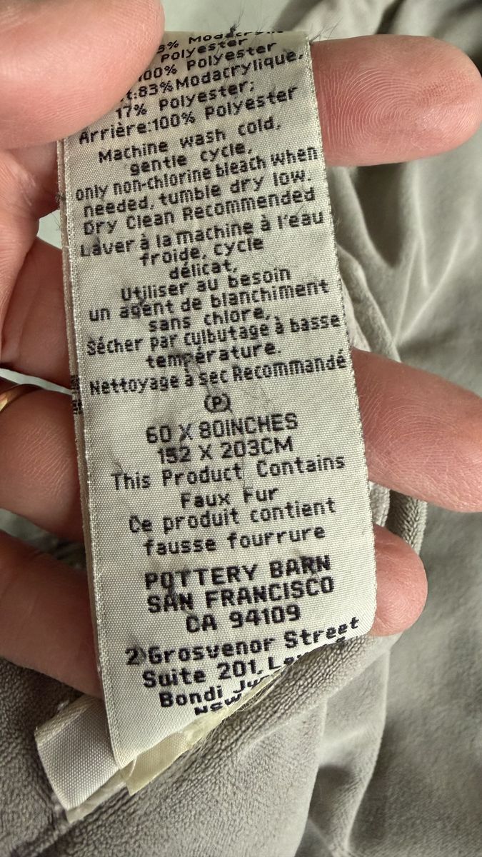 Pottery barn faux fur throw in chinchilla. Size is 60"x80". I also have a few other sizes that I'm selling In grey ombré