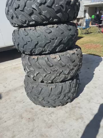 Selling 5 tires and rims off my Honda pioneer 1000, 2021. Fronts are 27x9, backs are 27x11. Spare tire is 27x9 and it’s never been on the machine. Tread it fair could get another or two out of them.