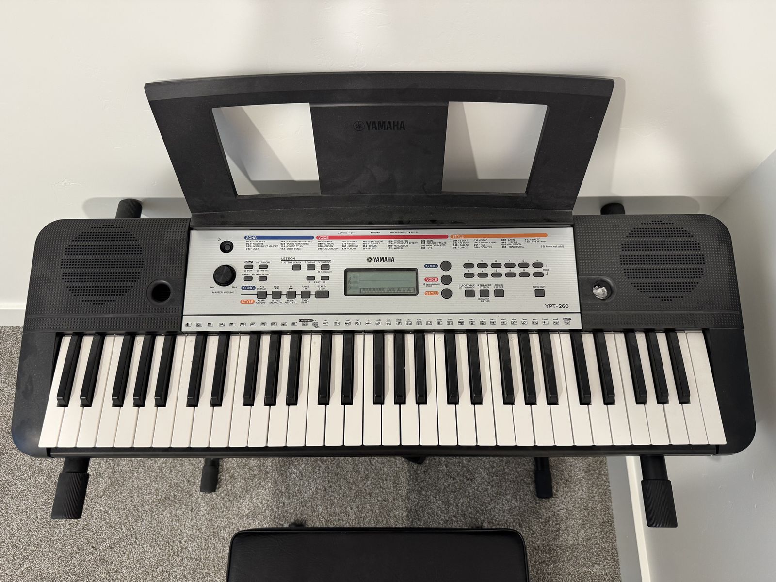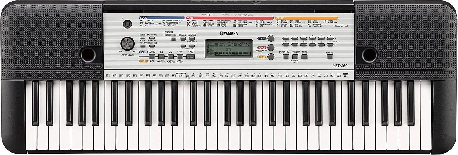 The Yamaha YPT-260 is a 61-key portable keyboard featuring a wide variety of sounds and functions. Featuring 400 high-quality voices, 130 accompaniment styles, 112 onboard songs and a 9-Step lesson function, YPT260 is the ideal keyboard for an aspiring musician.