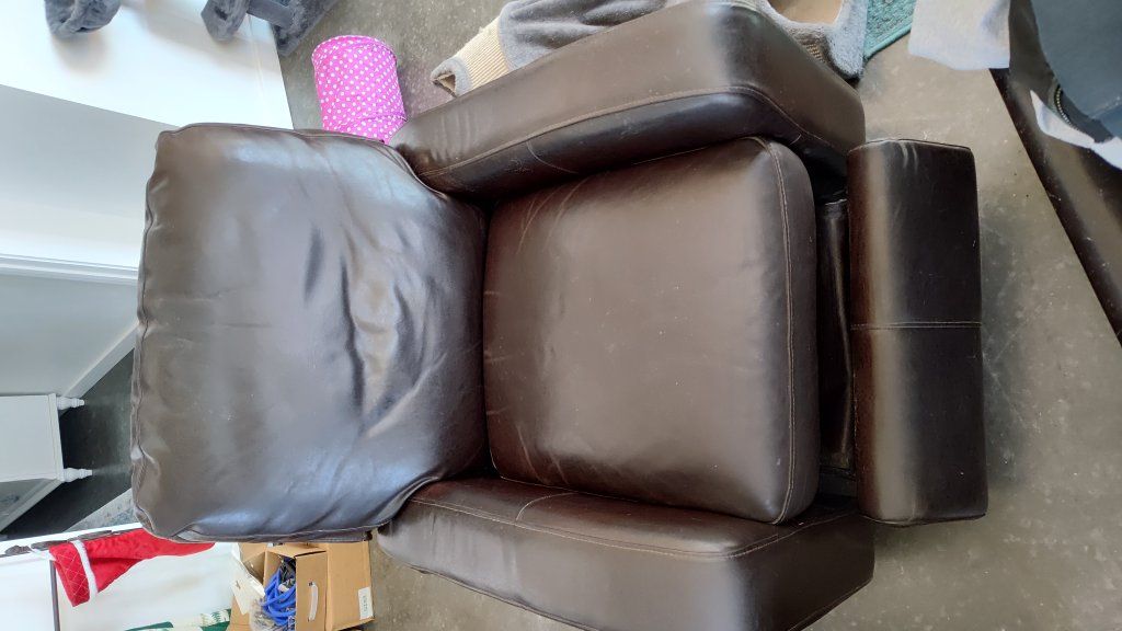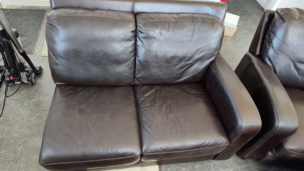 VenmoI have a full sectional couch set made of real leather, which also includes a matching recliner. The whole set is in very usable condition. I have cats, the previous owner had dogs, so pets have made small marks on some of the cushions. I'm selling because I don't use them personally and they take up more room than I'd like. Dimensions: Recliner: 35" W x 43" L x 37" H Double section: 54" W x 40" L x 37" H Ottoman: 24" W x 48" L x 37" H Single section: 25" W x 40" L x 37" H Triple section: 40" W x 90" L x 37" H Bring a trailer and some muscle. I will help get it out and load, but these are all two person lifts. I'm only available Fridays, Saturdays, and Sundays.