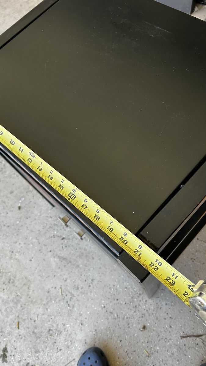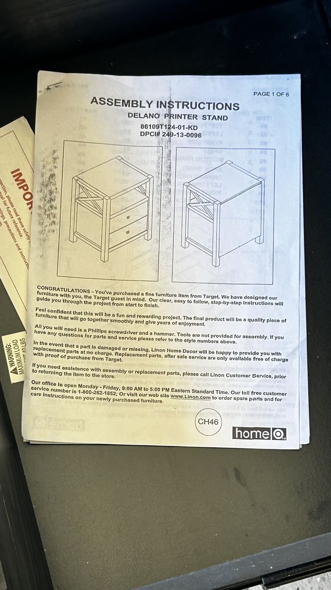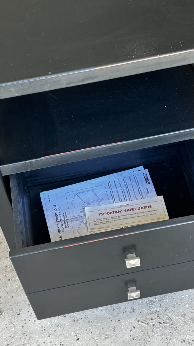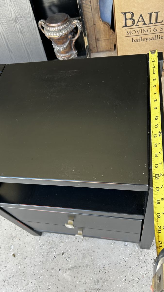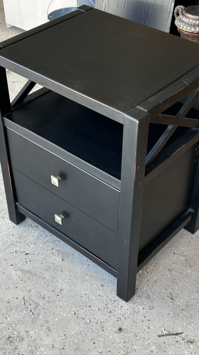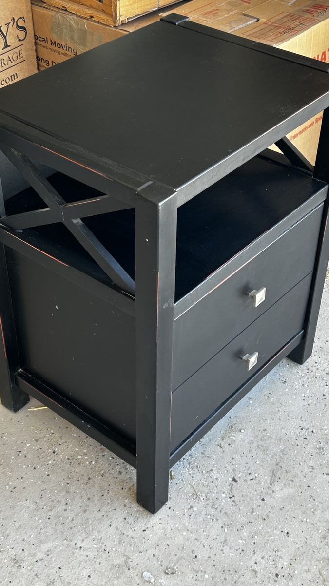 This is a black Delano Printer Stand or night table. Measures about 22” wide x 17” deep x 27” tall. One drawer. Gently used condition. Cash at pick up in Highland, UT.