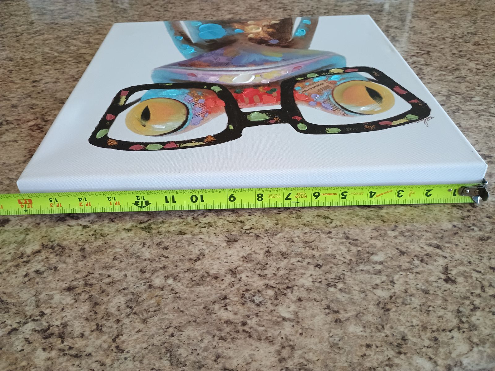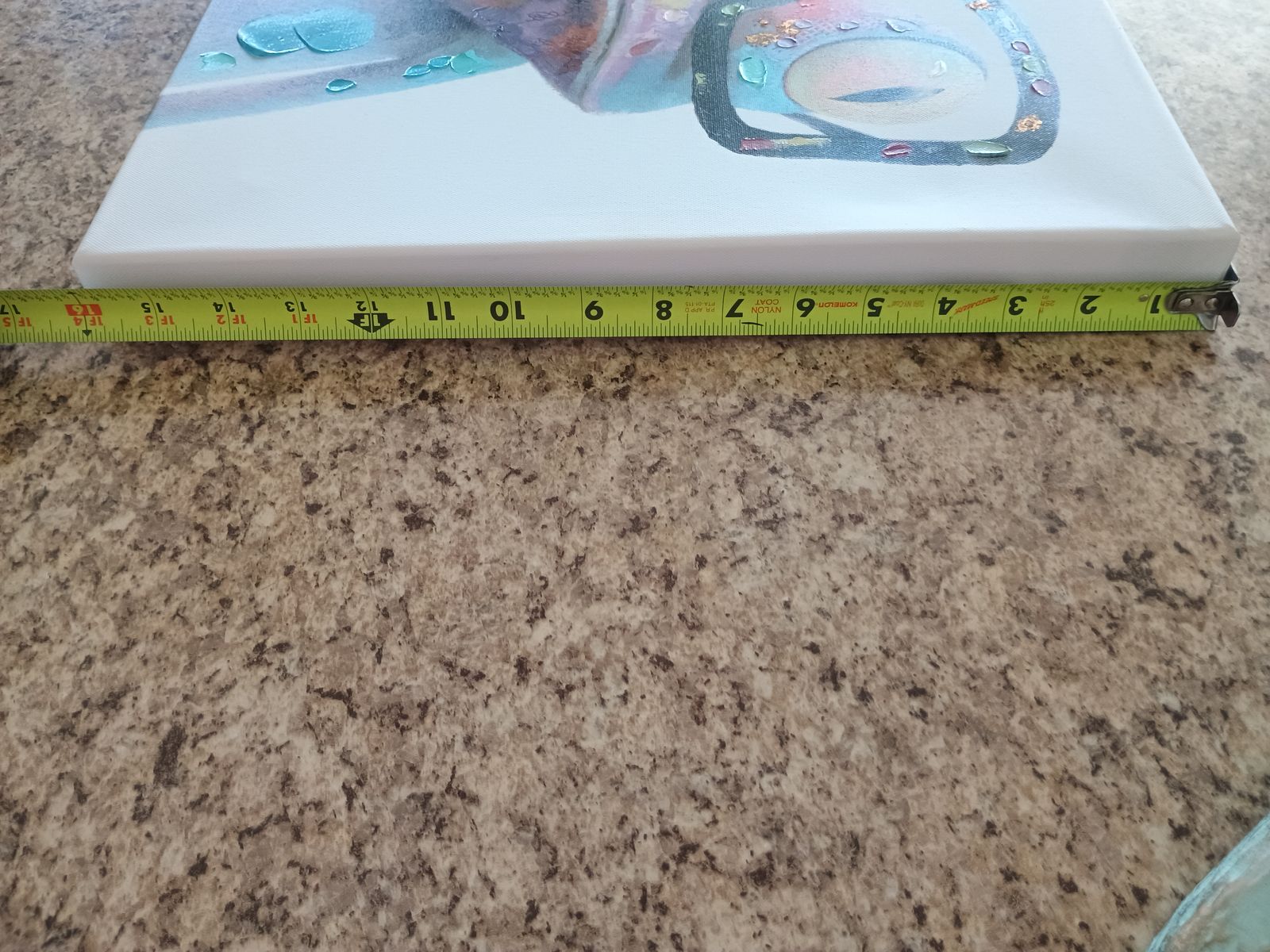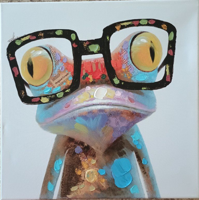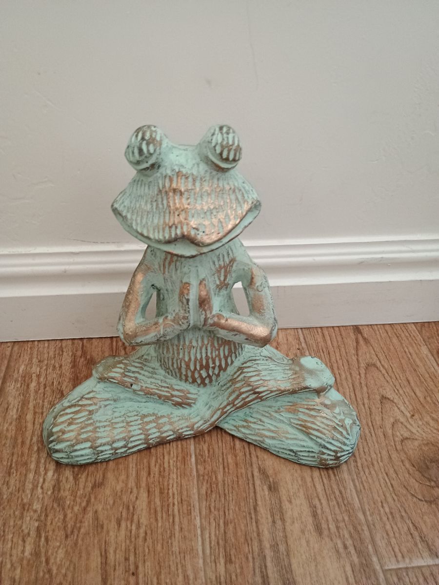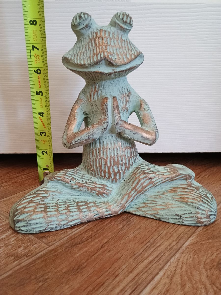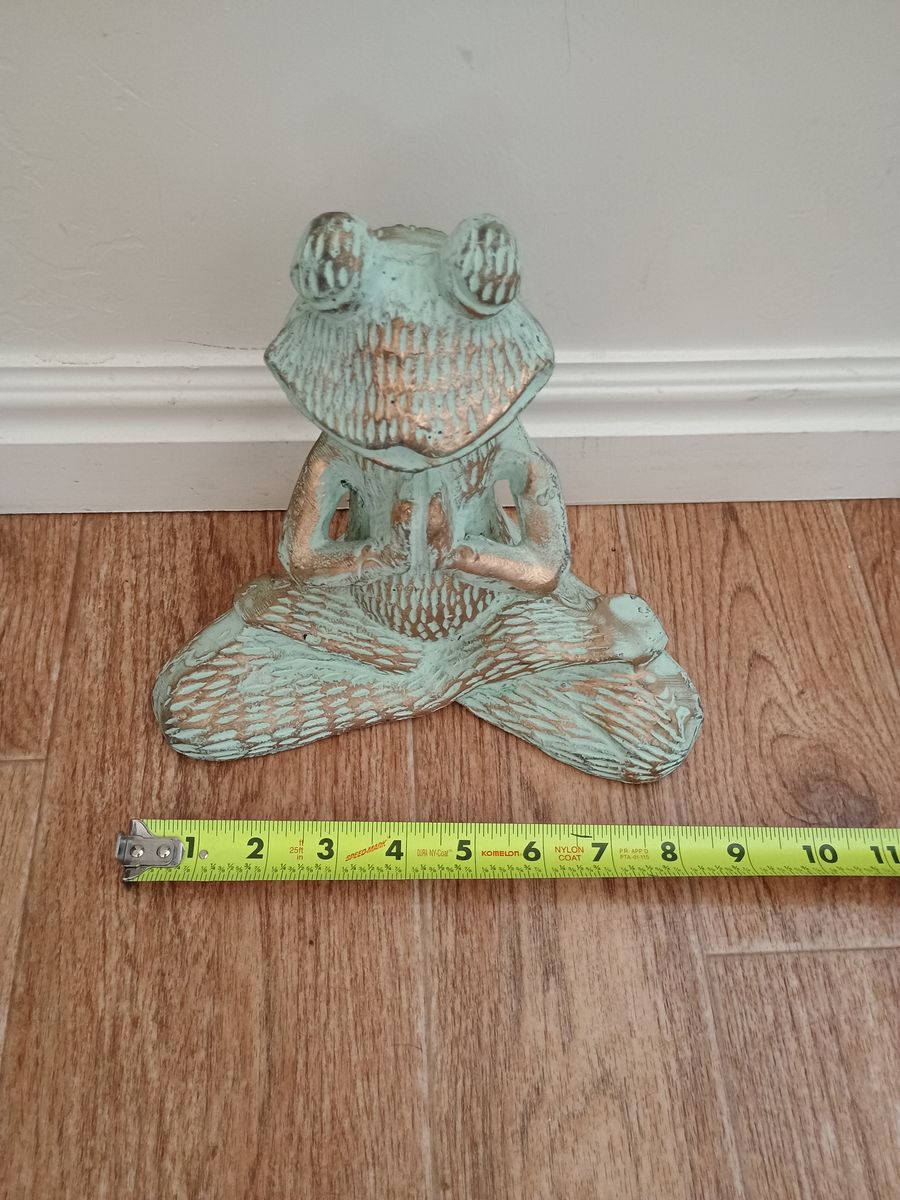 Perfect condition. I bought these to brighten my life when I was healing from a rough situation. The wall art originally cost $60 and the meditating frog originally cost $30. Selling the set for $40. Wall art is 16 inches by 16 inches. Meditating frog is approximately 8 inches wide, 8 1/2 inches high, and 4 inches deep. Keywords: painting, figurine, statue, decorations, yoga, fun, happy, silly, home decor, adults, children's