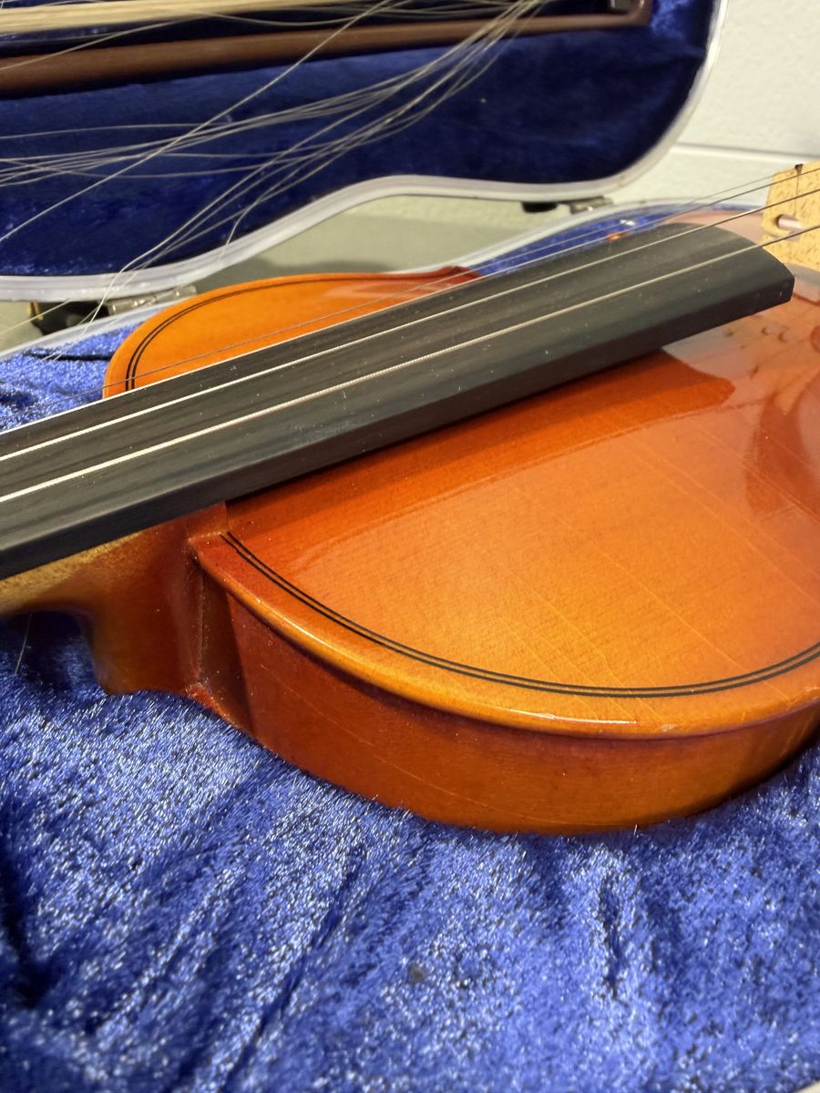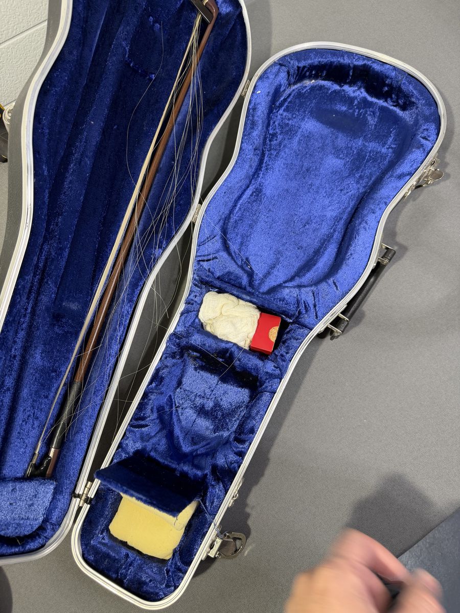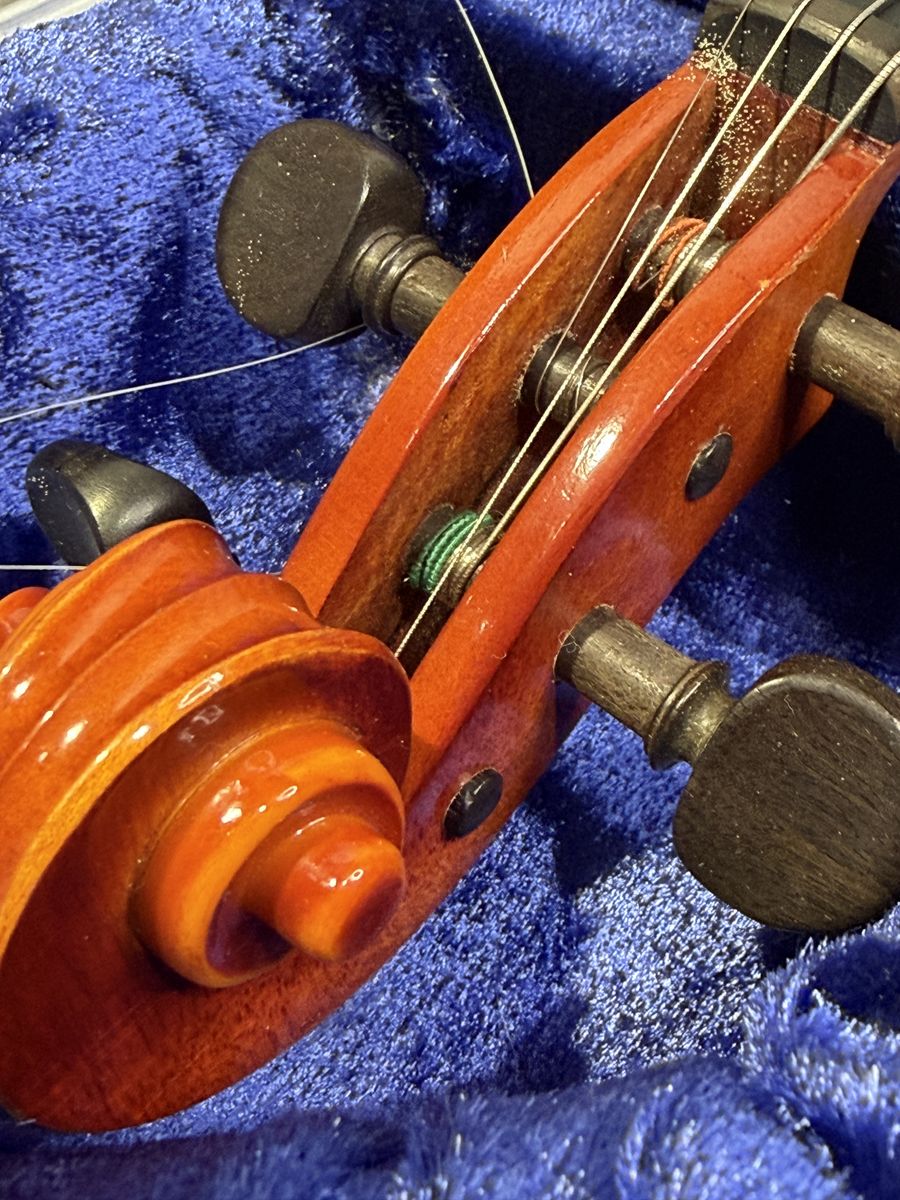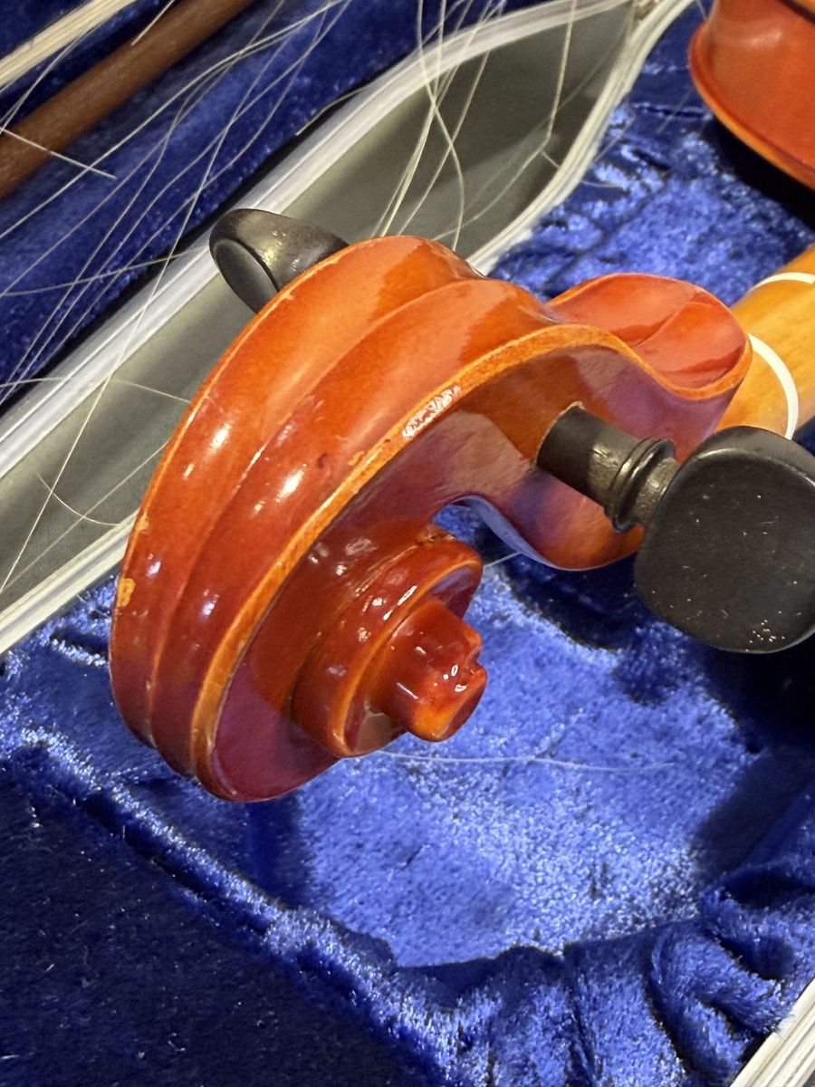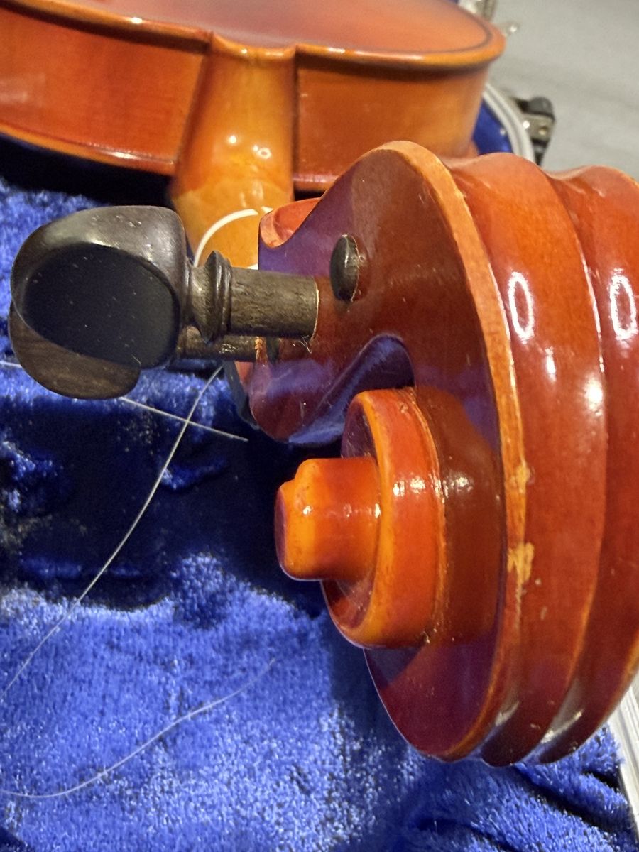 VenmoThis violin was a child's instrument in the late 80's and has not been used and stored since then. The violin and bow both appear straight, clean, and it good shape. Some of the strands of the bow are broken, but can be restrung. The tuning pins seem to turn readily, and it does make good and clear sound when strummed.