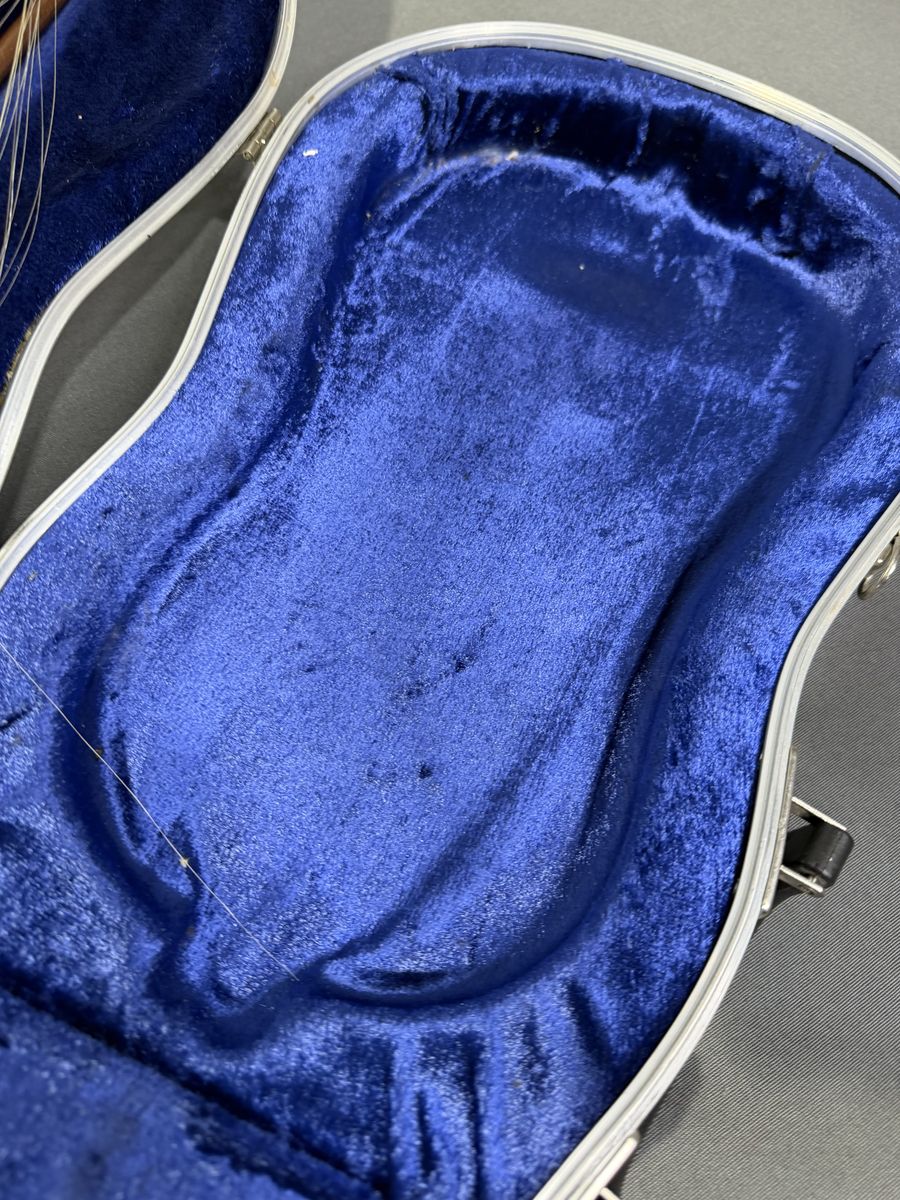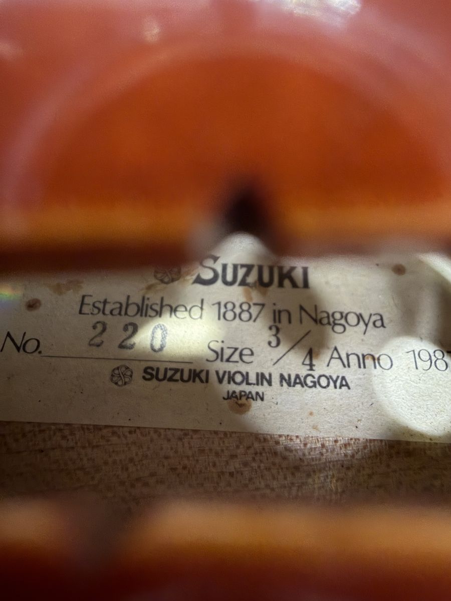 The case inside and outside are a bit worn, but not beyond expectations and the latches close properly. The Yamaha and Suzuki labels are in tact inside the violin.