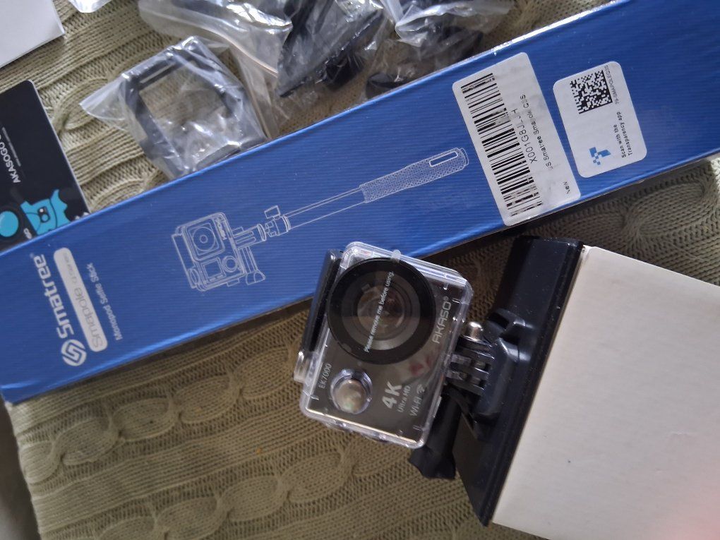 Brand new AKASO EK7000 Wifi 4K Action Camera with all the attachments, packaging, chargers and cleaning tools. Comes with or without new Smatree Q Series monopod selfie stick. In total they cost $120, I'm asking $100 for both or best offer.