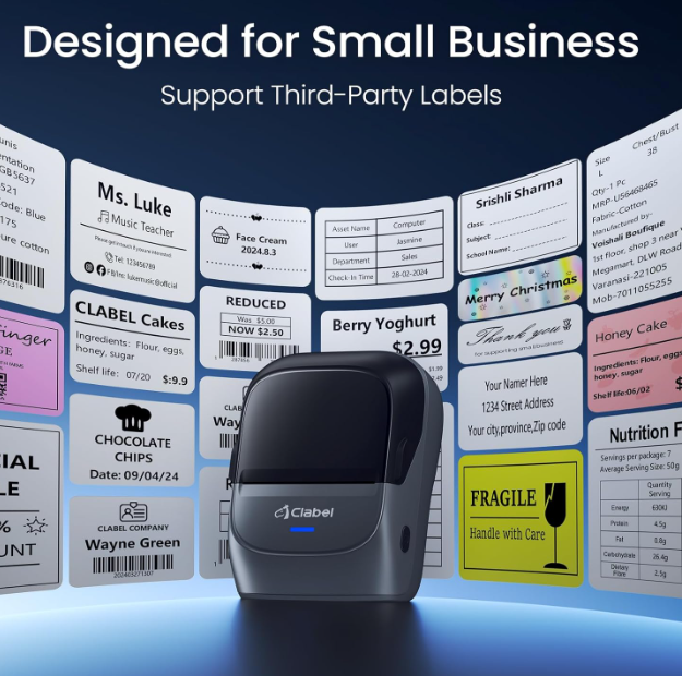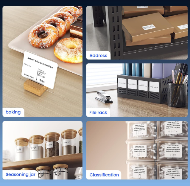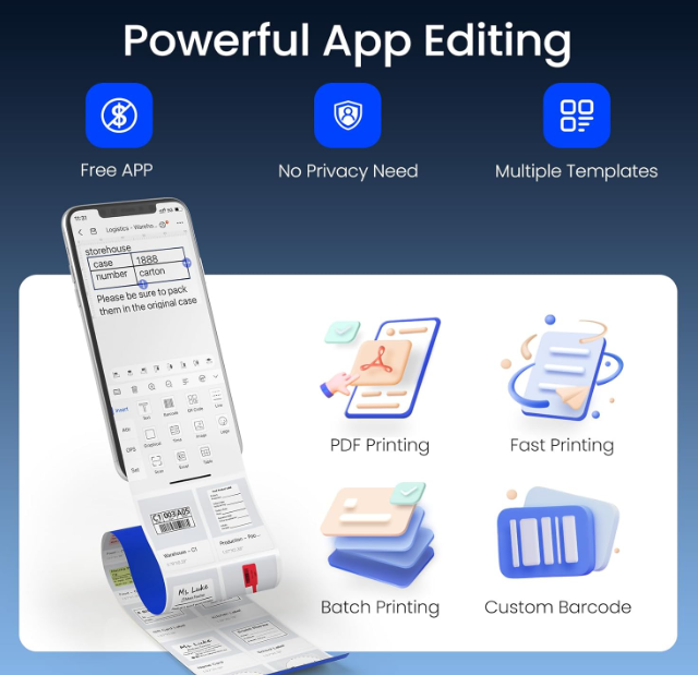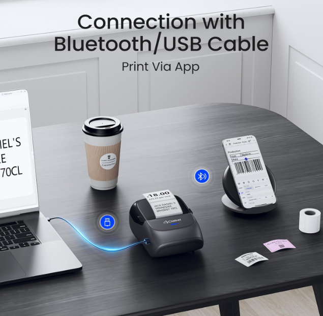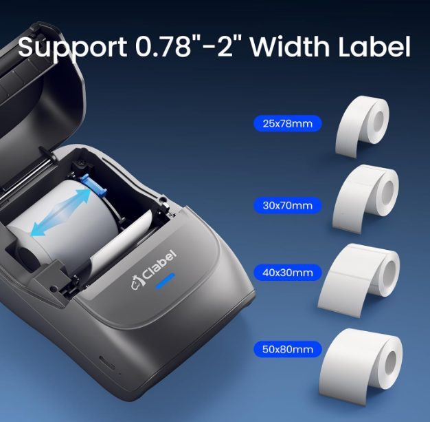 ZelleInkless High-quality Printing:This Label Maker with Direct Thermal Technology. Equipped with high-speed chips, you can enjoy high-definition without relying on ink or toner. Bluethooth Label Maker Machine with Tape support label width 25-50mm(0.98"-1.96"). The Label printer comes with a Label Tape placed in the paper bin