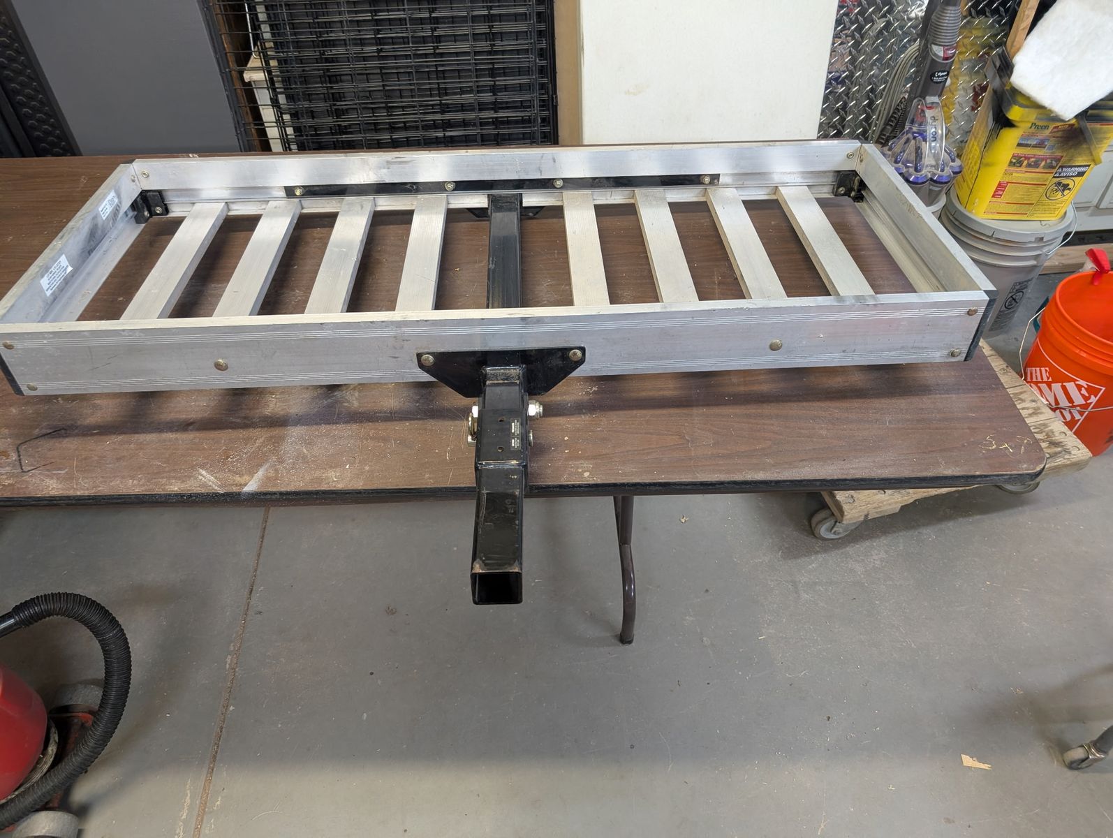 For sale receiver hitch cargo carrier 20-in x50 in is the outside dimensions. It is lightweight aluminum folds up when not in use. It is in good condition Asking $65. Please call or text Ed at 801- 710-3885. Location about 17 MI from St George Utah.