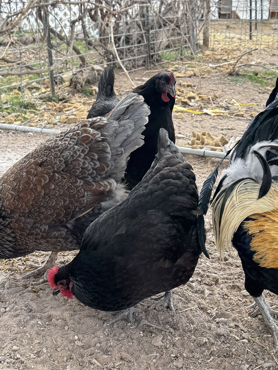 Hens: Blue Red Laced Barnevelder, Black Australorp, Black jersey giant, Blue jersey giant